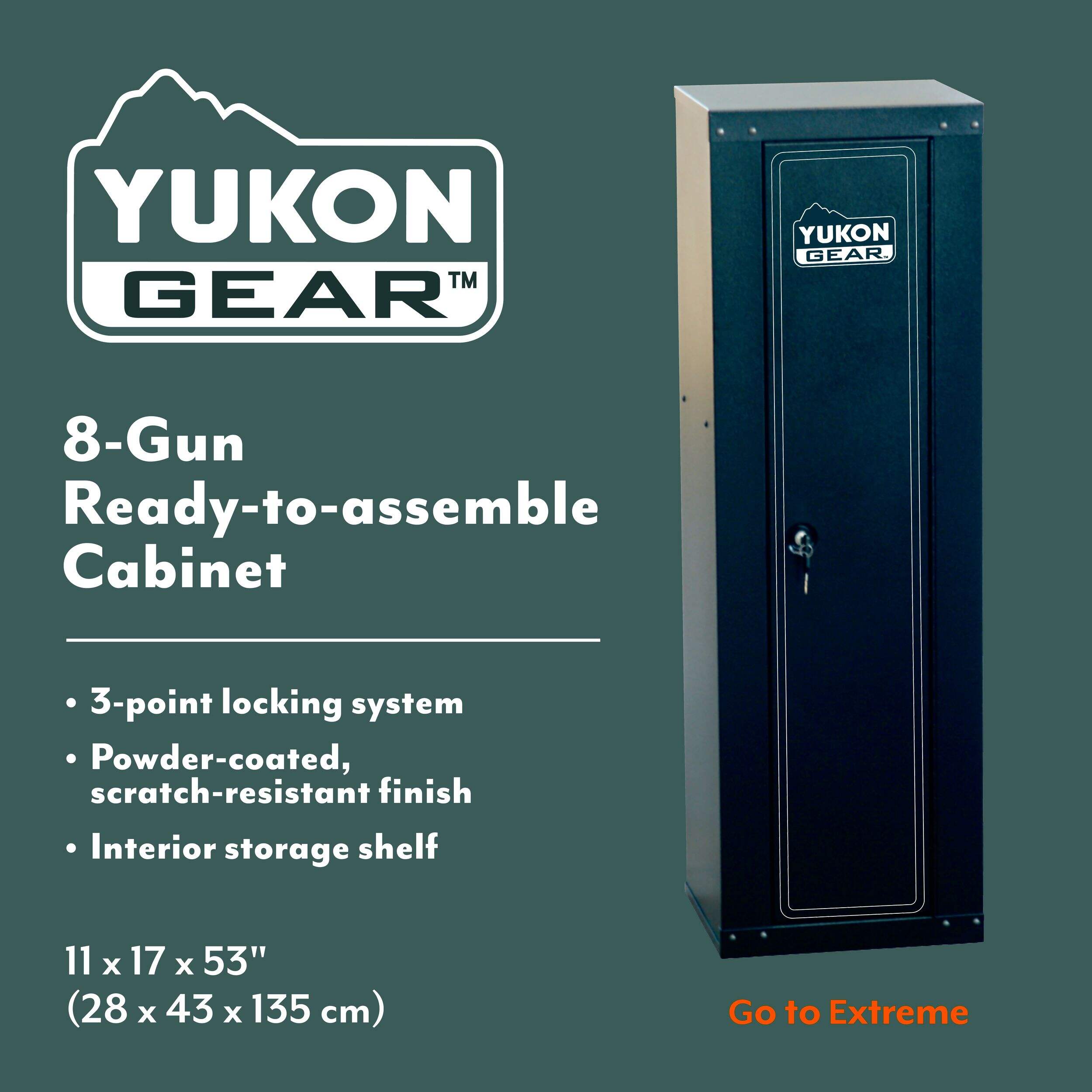 The Yukon Gear Ready-to-Assemble 8-Gun Security Cabinet is an ideal solution for safely storing hunting rifles when not in use. Its spacious design accommodates up to eight long guns, ensuring they're kept secure and organized. Built from durable materials, this cabinet is made to withstand wear and tear while providing peace of mind. The thoughtful design includes storage for ammunition and a reliable locking mechanism to ensure firearms are protected.