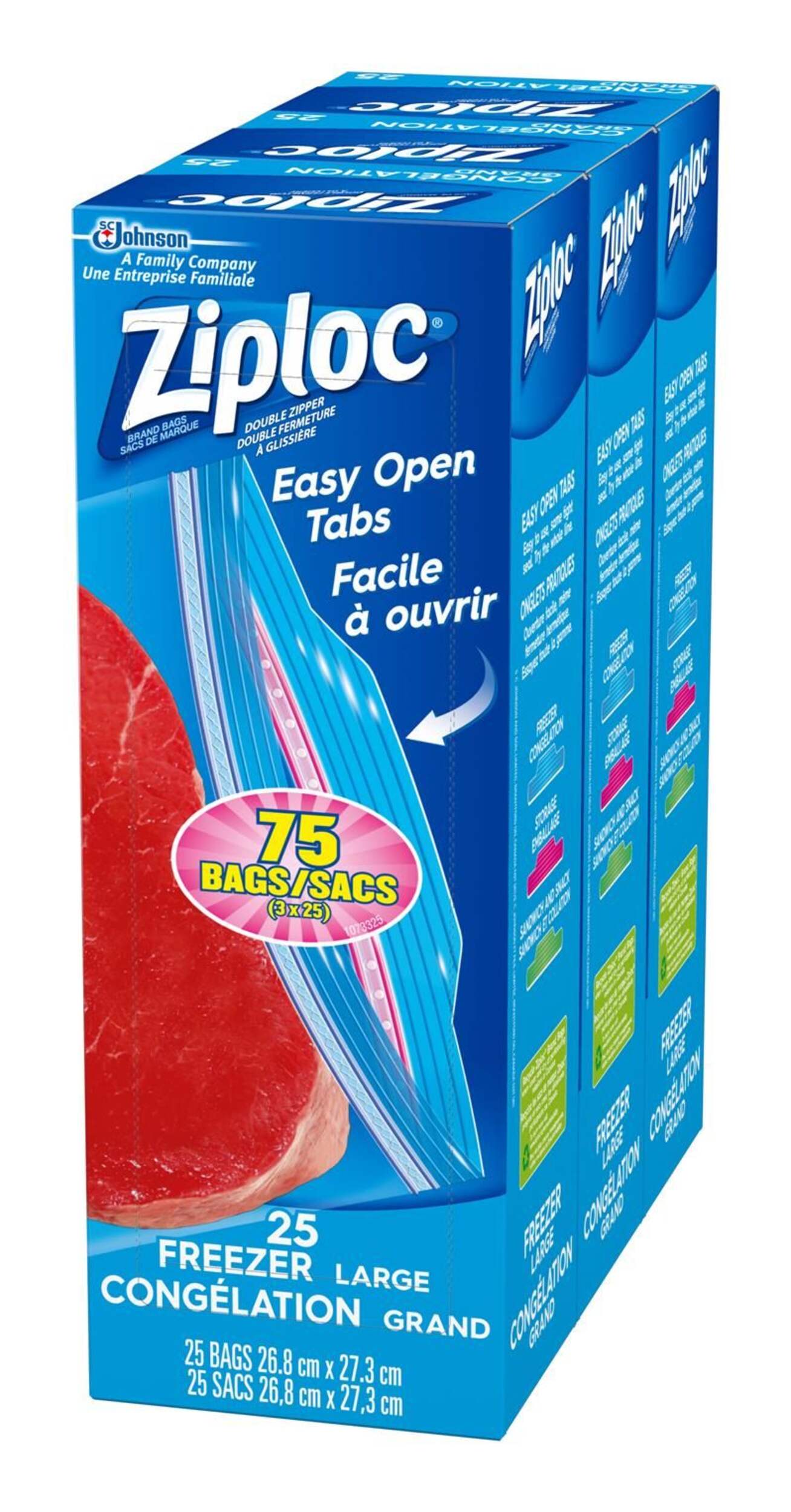 Features Smart Zip Plus Seal and Easy Open Tabs; double zipper provides air-tight seal