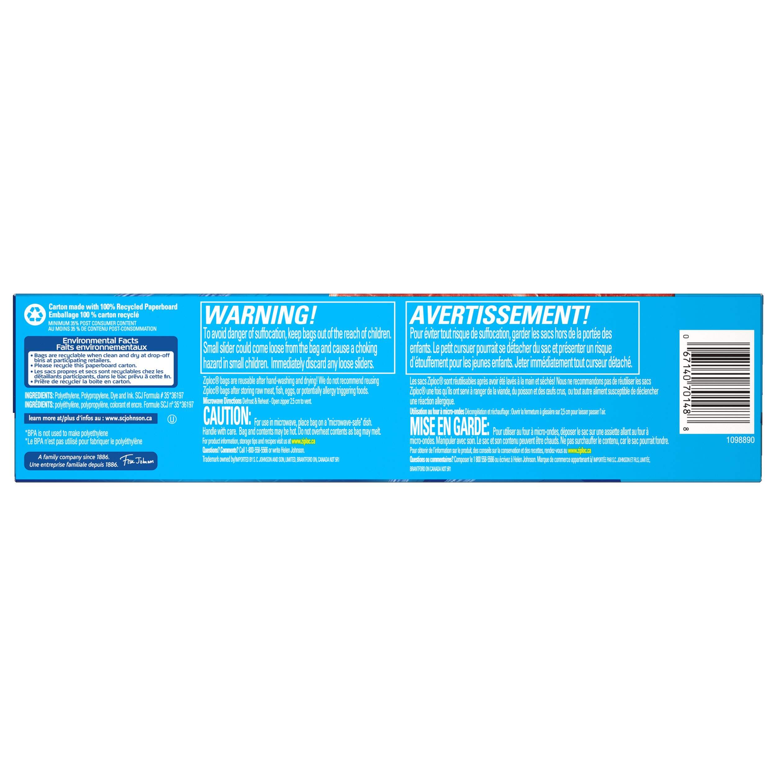 Unloc a clutter-free life with Ziploc® slider freezer bags. They feature a sturdy, expandable bottom that allows you to stand the bag up while you fill it, as well as Ziploc Power Shield technology. These bags will help you to store food and non-food items more efficiently and confidently than ever before so you can maximize the space in your kitchen cupboard, fridge or anywhere else in your home. These puncture-resistant durable Ziploc® freezer storage bags are a great, versatile way to bring order to your home and life. Use them for everything from craft kits to crayons, toys, care kits, pet accessories … all the way through to fresh and non-fresh food items. The easy-open sliders help you to seal in flavors and aromas when storing food in the fridge but give you easy access when it’s time to open them. The expandable bottom gives you more opportunities to maximize space by standing items vertically and the strong BPA-free plastic means you can safely store fresh items or liquids. These Ziploc® bags can be used again and again (when used as directed), which means you save money and reduce waste. Unloc better living with Ziploc slider freezer bags!