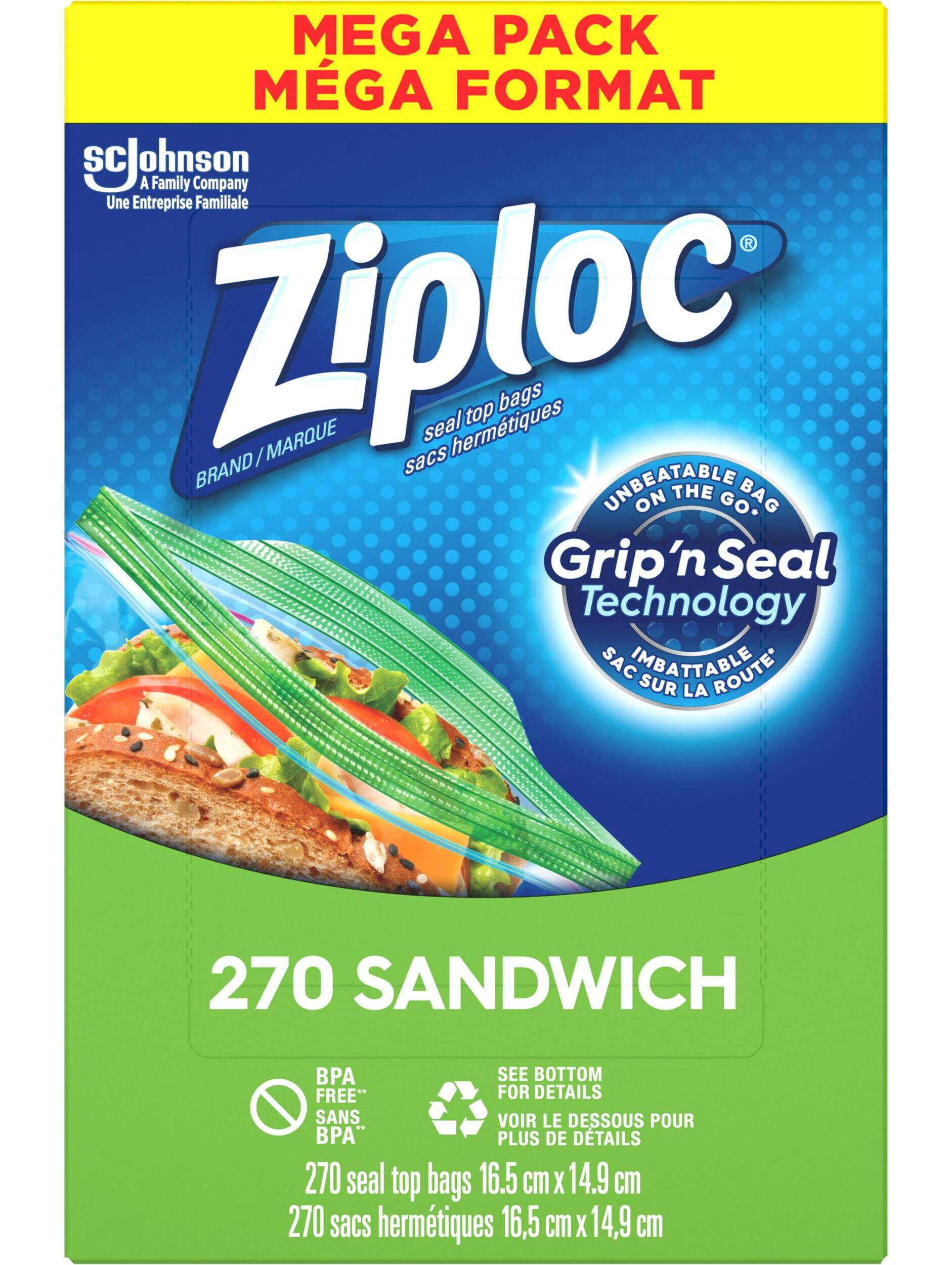 Grip ‘n Seal Technology with extended tab, easy-grip texture and double zipper makes these plastic sandwich bags easy to use