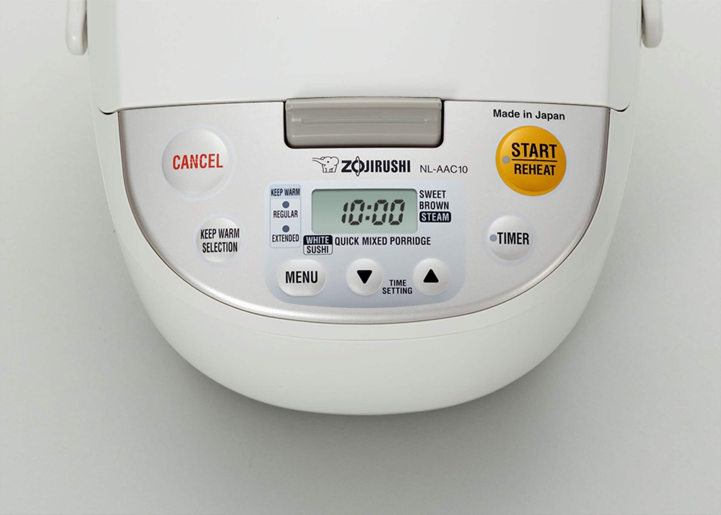 7 Menu settings include: white/sushi, mixed, porridge, sweet, brown, steam and quick cooking