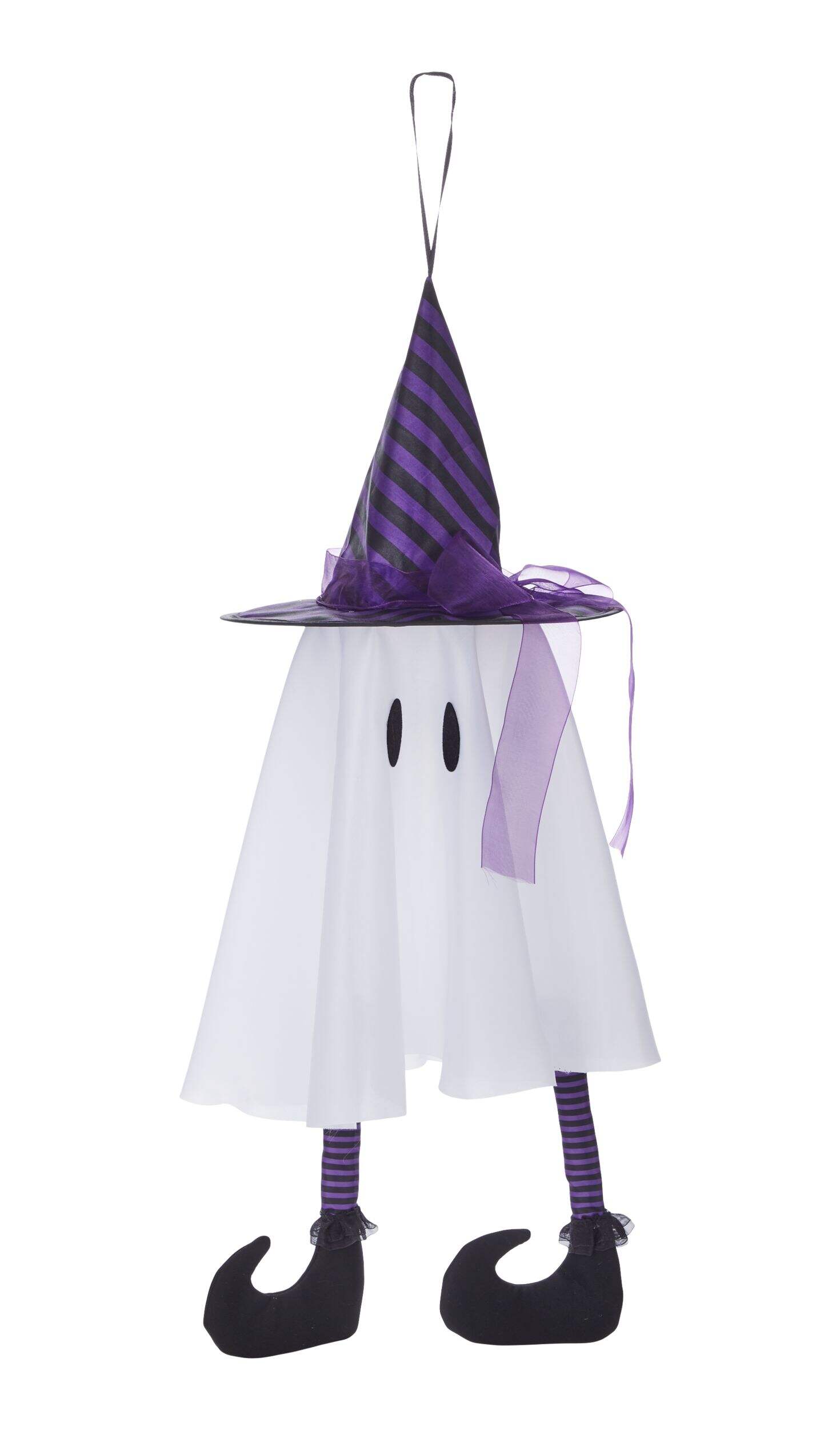 Ajoutez un fantôme à vos décorations d’Halloween avec le fantôme à suspendre For Living. Joli fantôme à suspendre pour l’intérieur avec boucle pratique pour le suspendre Le fantôme à suspendre blanc porte des collants à rayures orange et violet avec un chapeau assorti et des yeux noirs qui le rendent effrayant. Fantôme suspendu d’Halloween de 28 po adorable pour les portes, les porches et les plafonds