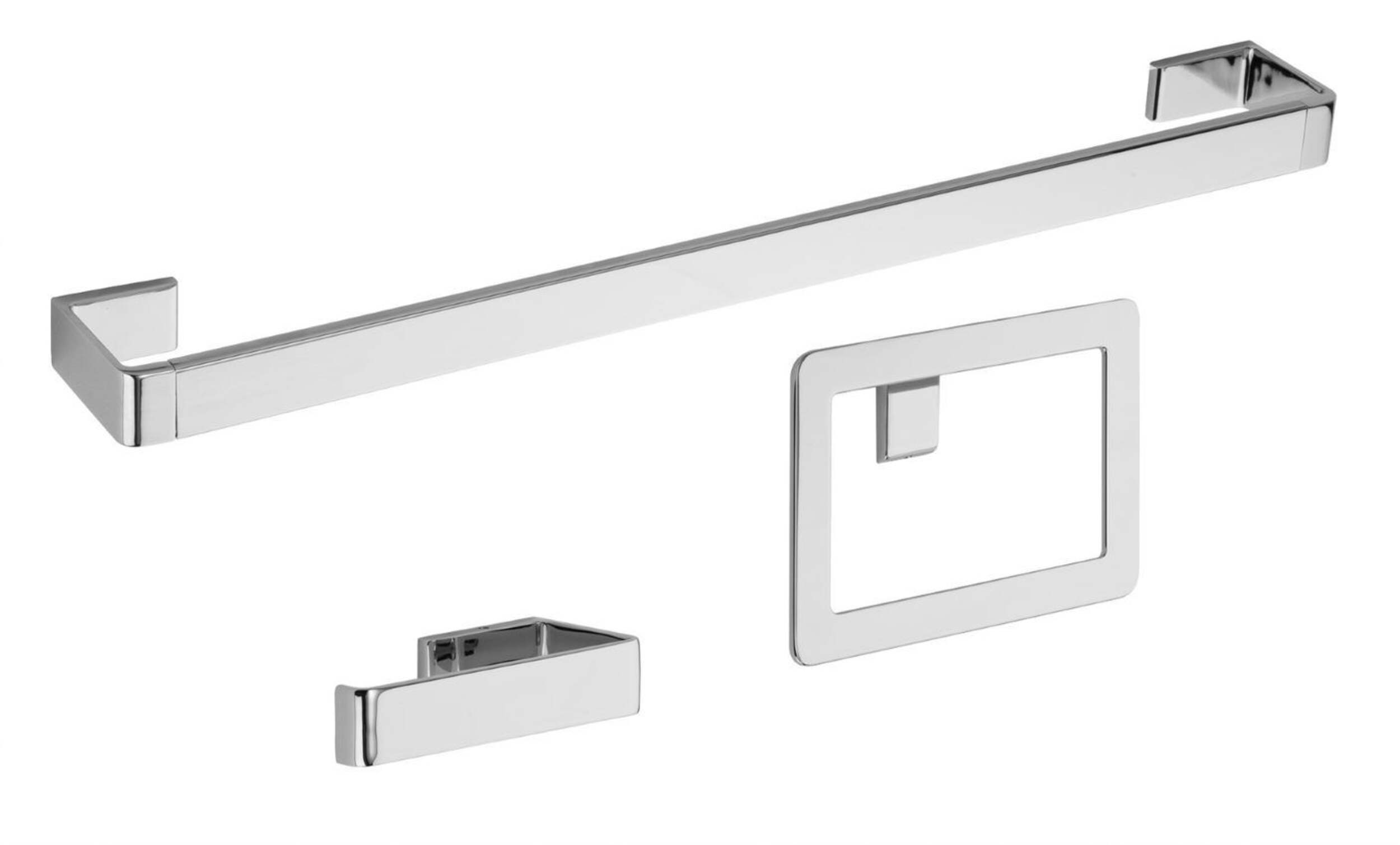 Trousse qui comprend (1) porte-serviettes de 18 cm (45,7 po), (1) anneau porte-serviettes et (1) porte-papier hygiénique