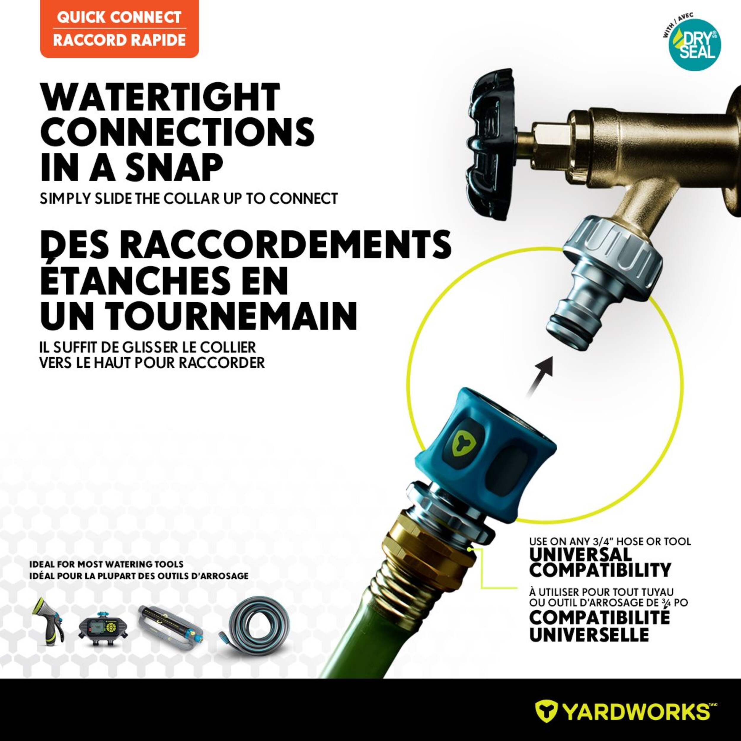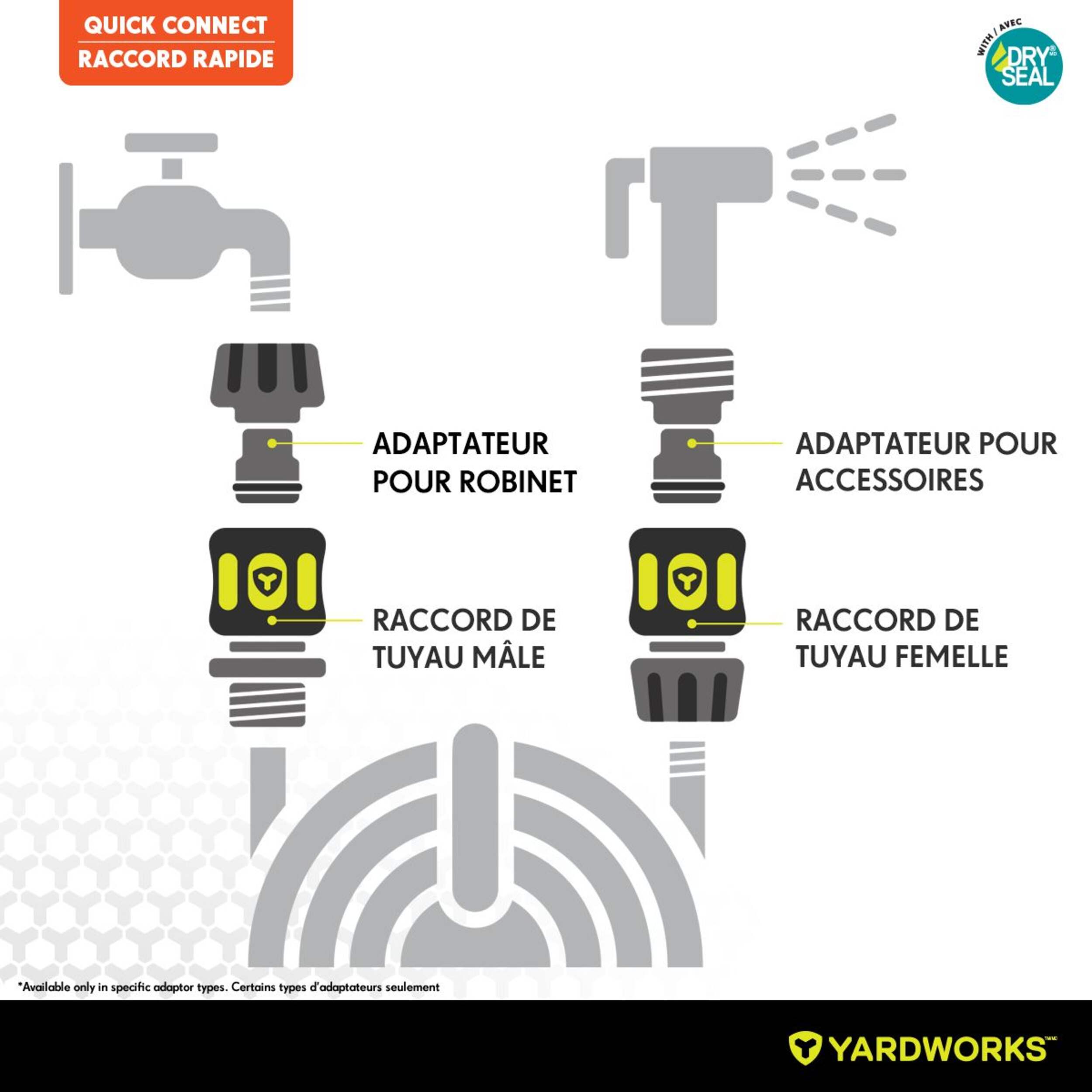 Adaptateur d'accessoire rapide Yardworks en métal doté d'un joint étanche pour une performance garantie contre les fuites