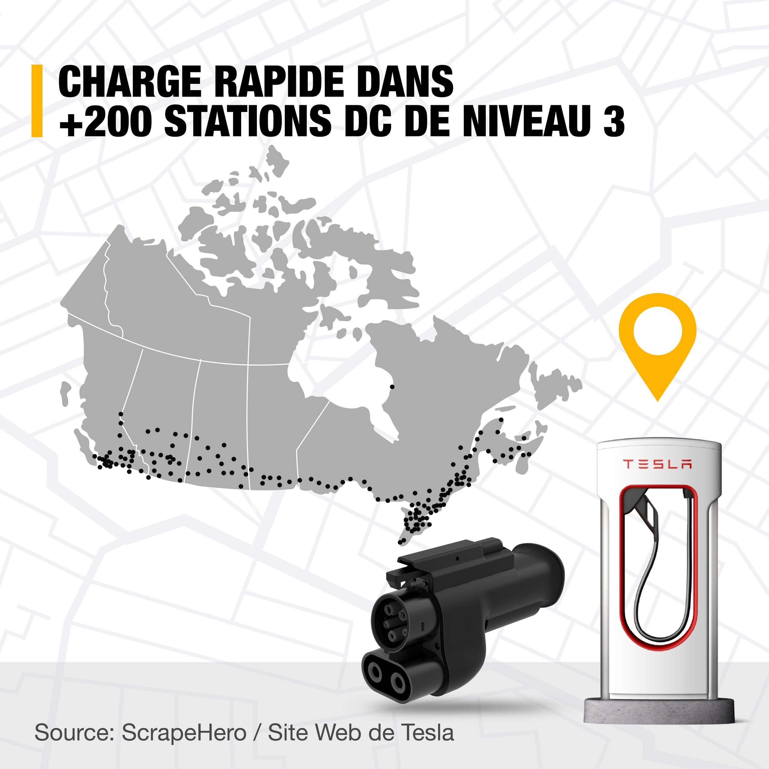 Ajoutez jusqu'à 150 miles d'autonomie en 15 minutes sur les bornes Tesla c.c., avec jusqu'à 500 A/1000 V