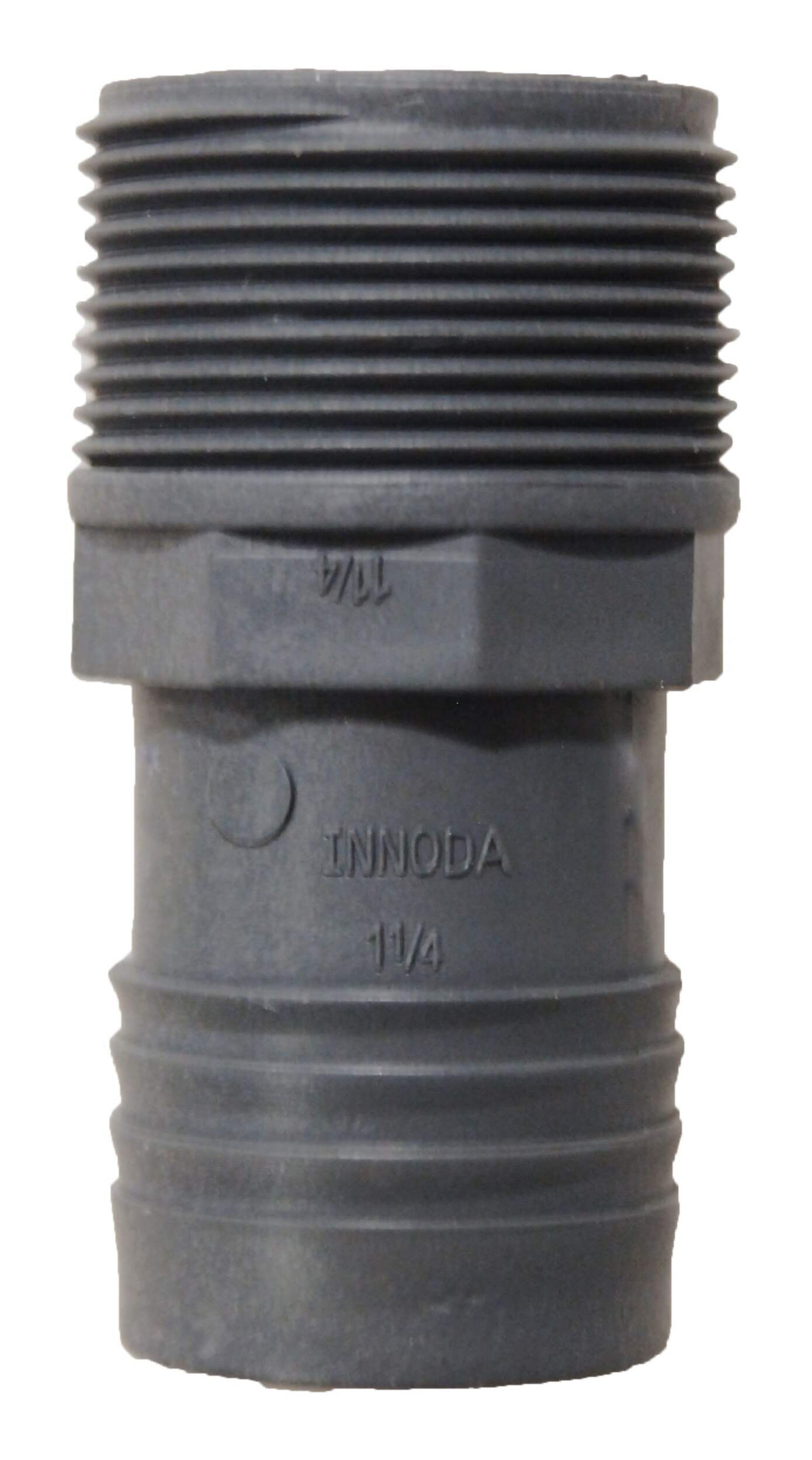 Adapte un raccord cannelé de 1-1/4 po à un tuyau à filetage mâle de 1-1/4 po (MPT)