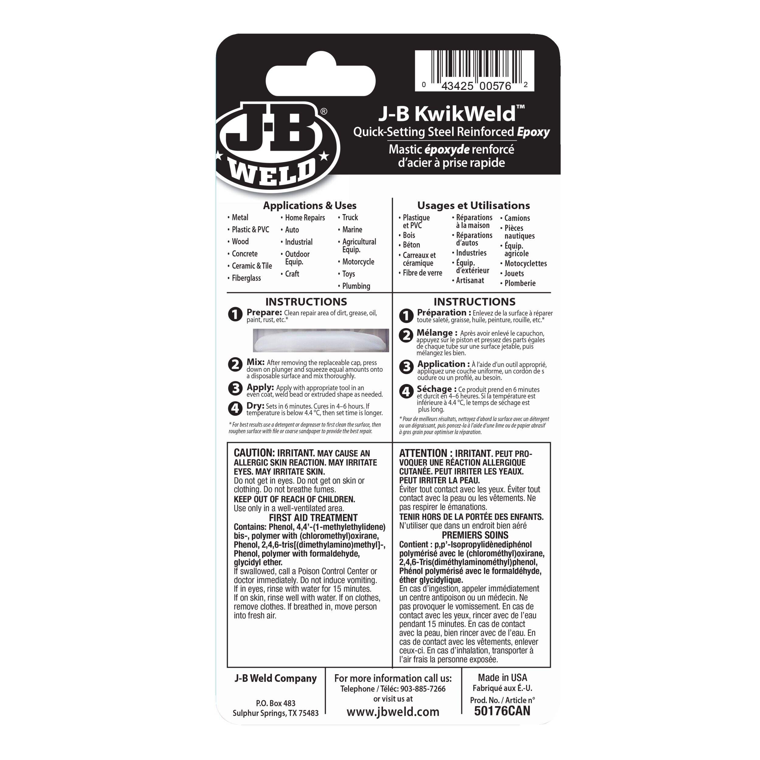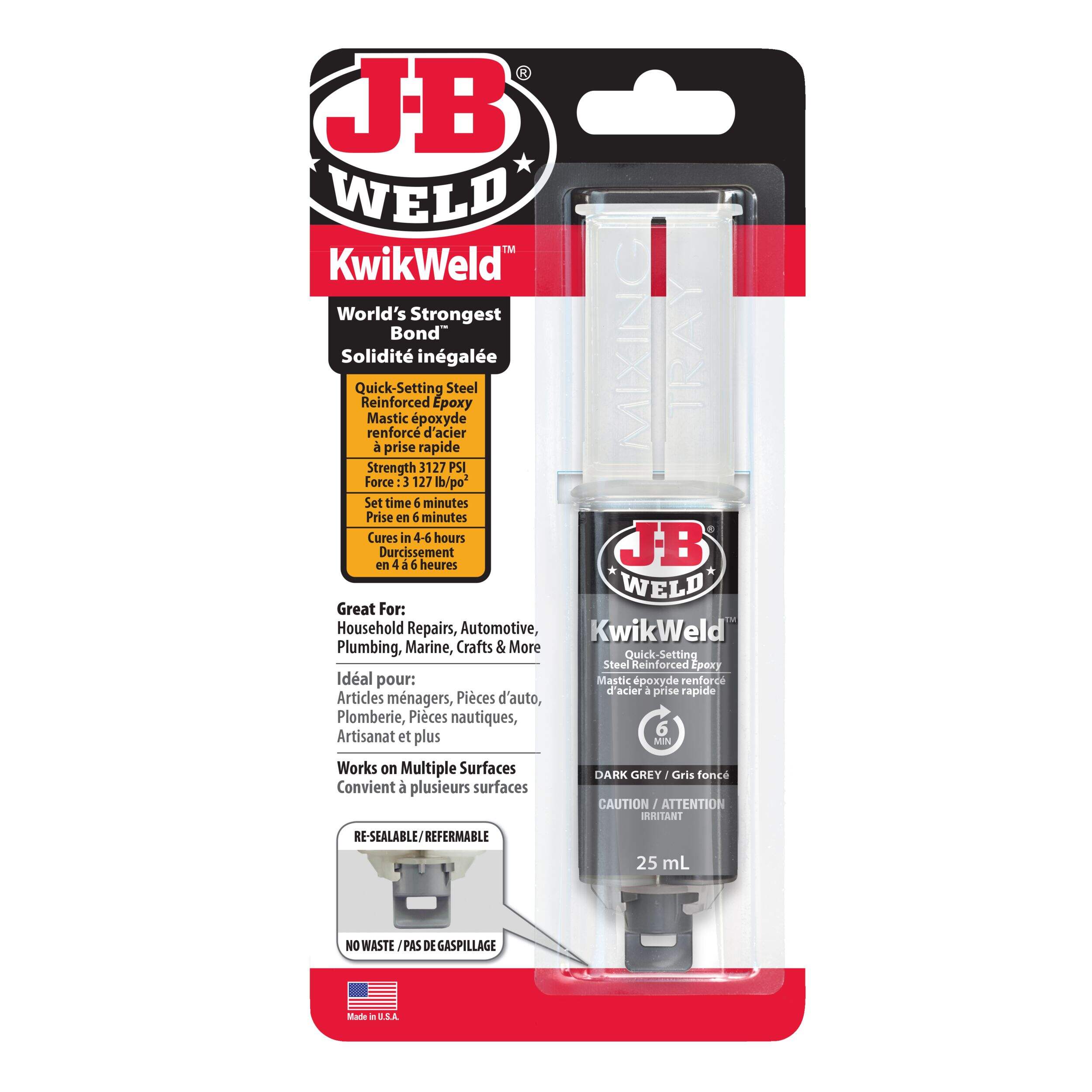 Adhésif J-B Weld KwikWeld, époxyde, seringue, idéal pour les réparations à la maison, l'auto, la plomberie, etc.