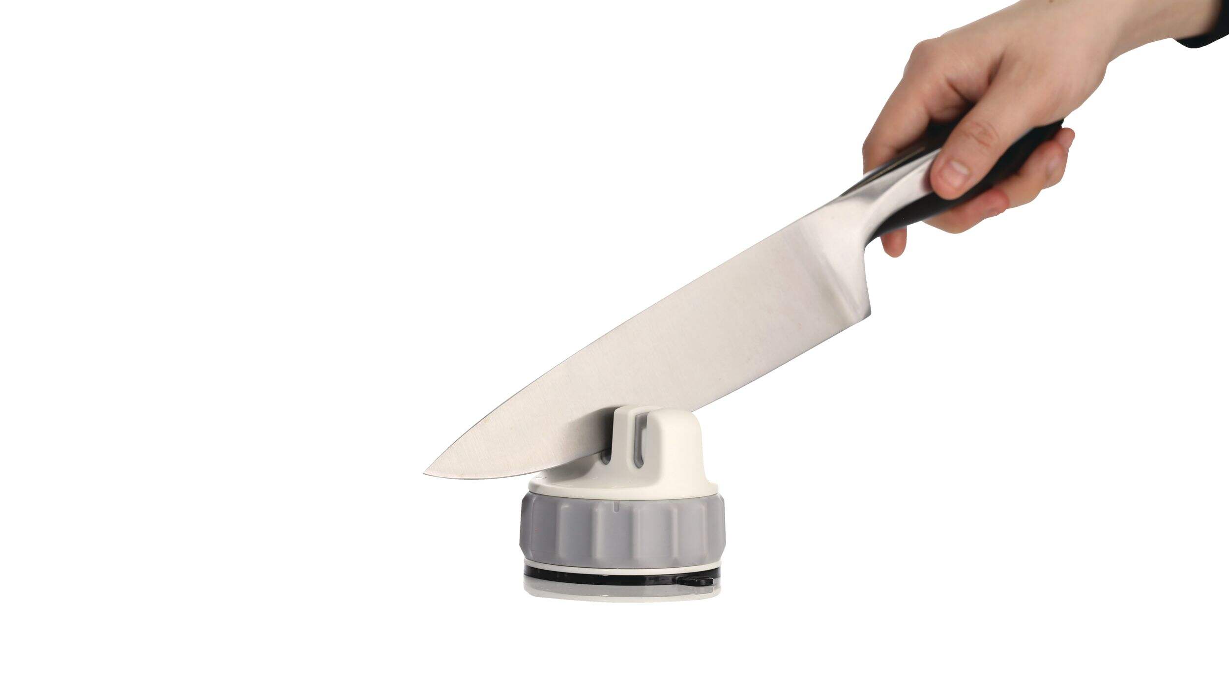 L'affûteur de couteaux HuntShield avec base à ventouse est doté d'une base unique qui se fixe rapidement à un mur ou à une table et élimine le besoin d'utiliser les deux mains.