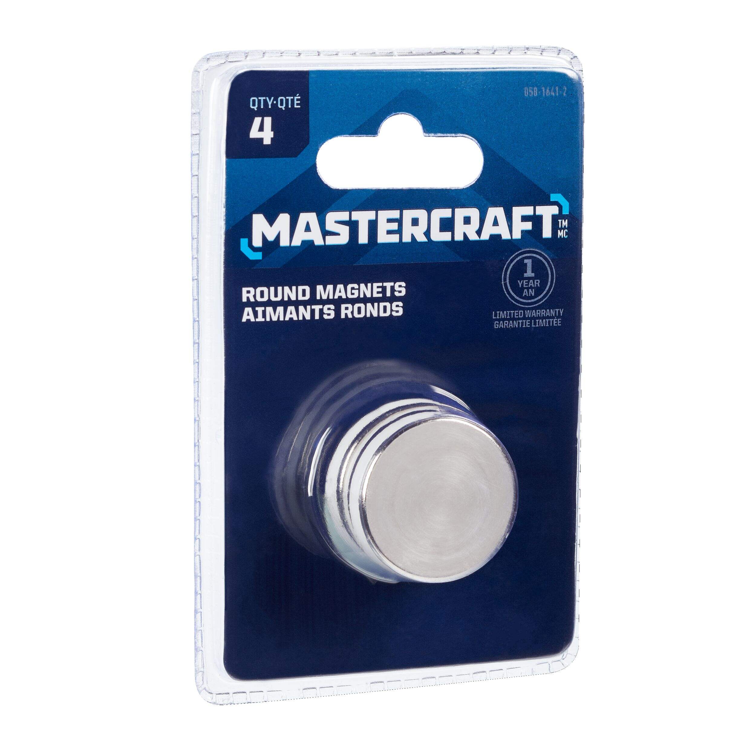 Parfaits pour les projets de bricolage, les expériences et les petits travaux autour de la maison, les aimants ronds Mastercraft adhèrent fermement aux surfaces métalliques. Cet ensemble comprend 4 aimants ronds, prêts pour tous vos besoins de collage, de fixation et de construction. Garantie de 1 an comprise.