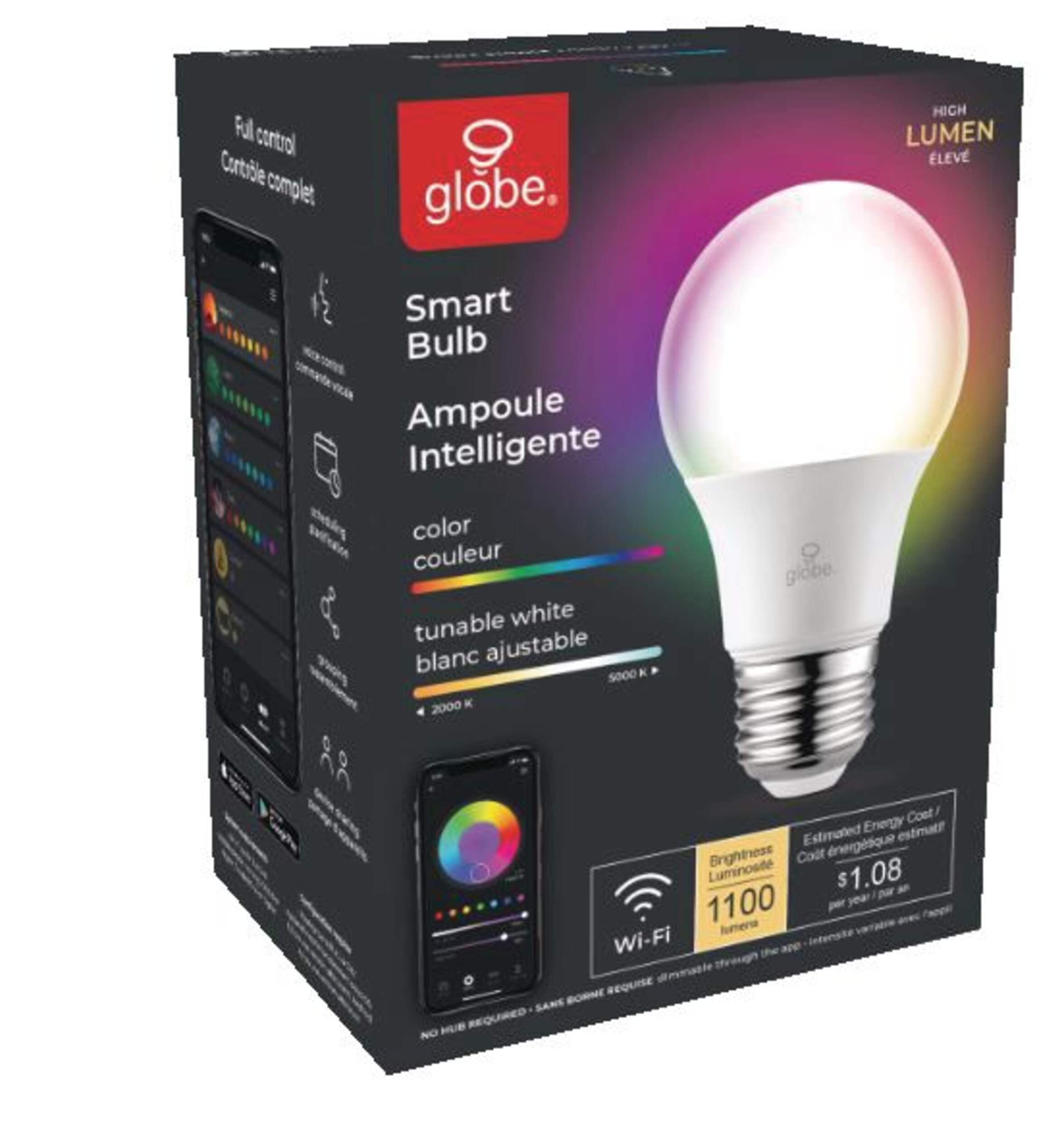 L'ampoule DEL intelligente Wi-Fi Globe Electric A19 s'intègre facilement à Alexa, à l'Assistant Google, à SmartThings et à Siri, ce qui vous permet de contrôler votre éclairage par commandes vocales. Cette ampoule écoénergétique produit 1 100 lumens, équivalent à une ampoule incandescente de 75 W et elle offre une température de couleur réglable de 2 700 à 5 000 K. Grâce au Wi-Fi, elle peut être contrôlée par un téléphone intelligent pour régler la luminosité et la couleur, ce qui en fait un ajout idéal à toute maison intelligente.