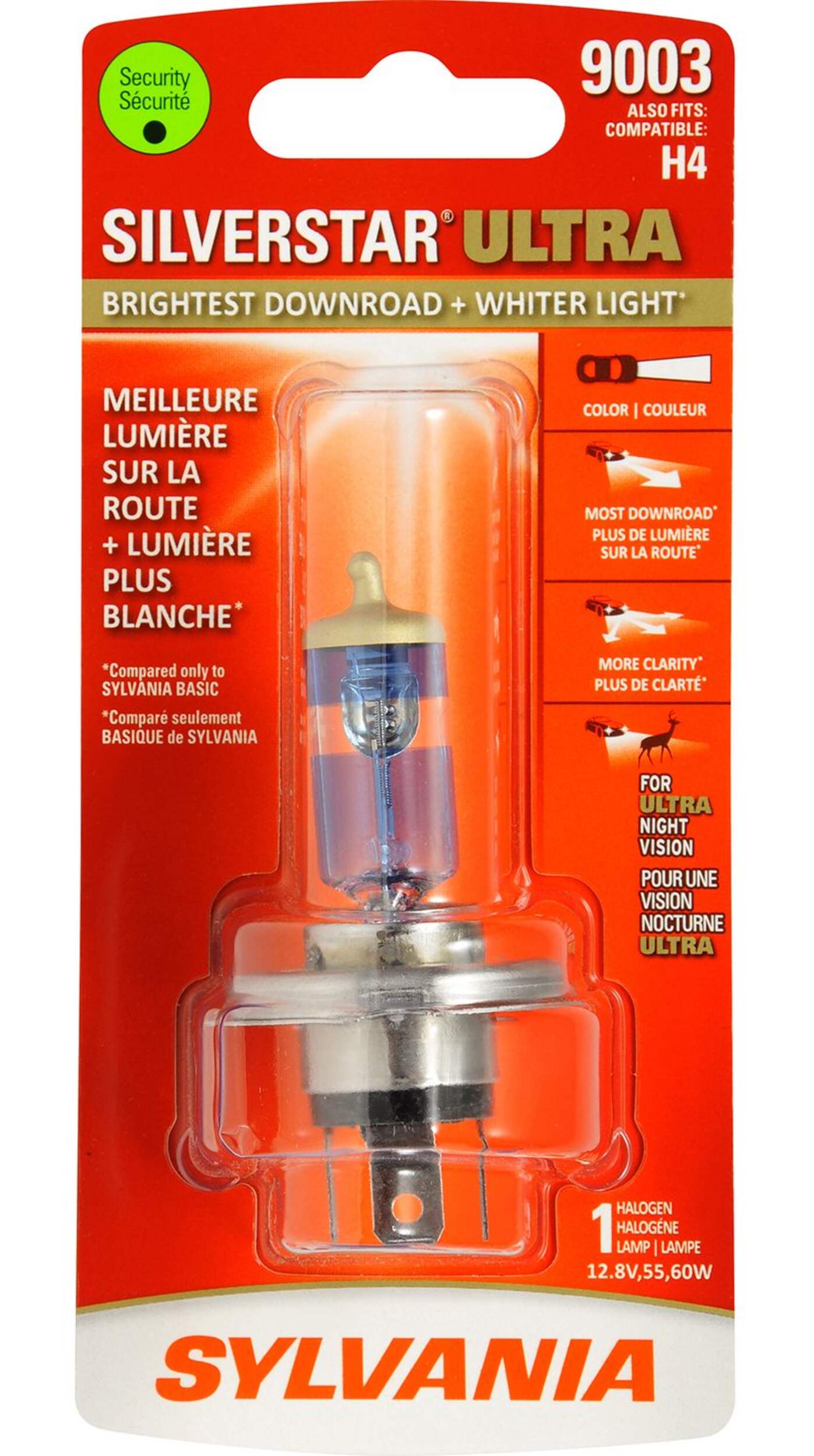 Améliorez vos phares de route et de croisement avec une paire d'ampoules halogènes Sylvania 9003 SilverStarMD ULTRA haute performance. Ce phare de rechange de qualité supérieure produit un éclairage plus blanc pour une clarté et une sécurité accrues. Le bleu cobalt et le revêtement tribande procurent une lumière plus blanche et une couverture tout terrain encore plus importante pour aider à distinguer les objets de la route. Prêt à installer soi-même, cette ampoule de phare remplace directement les ampoules d'origine de votre véhicule, sans modification requise.
