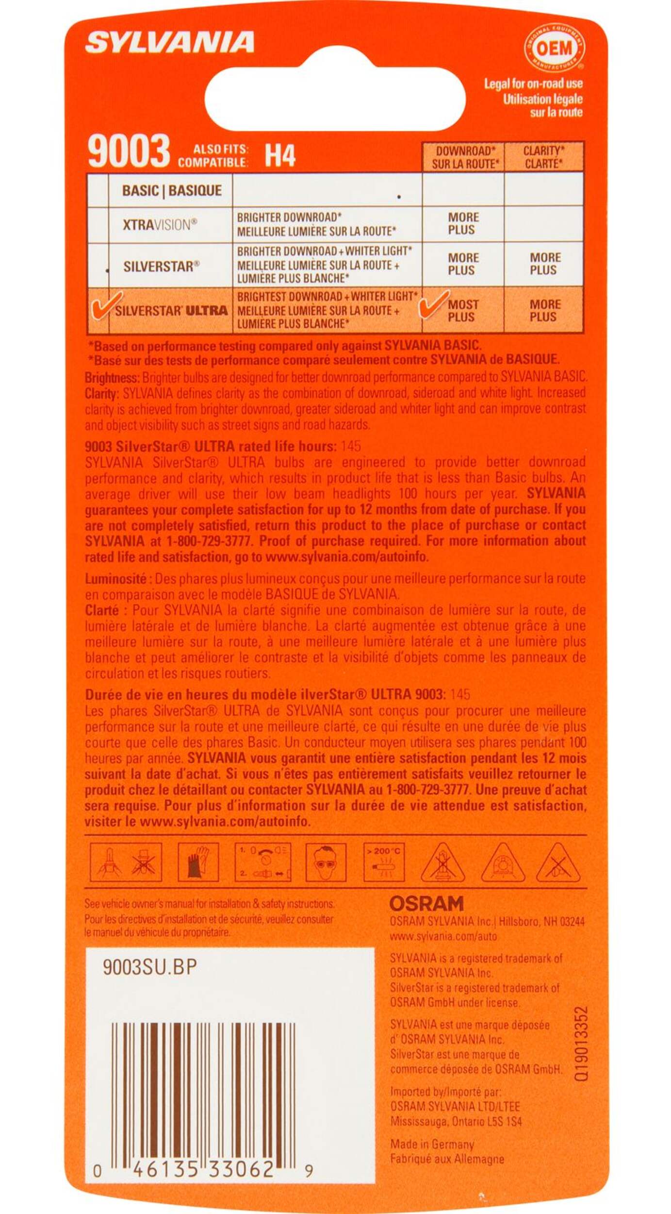 Fabriquées par Sylvania, un fabricant d'origine d'éclairage automobile fiable