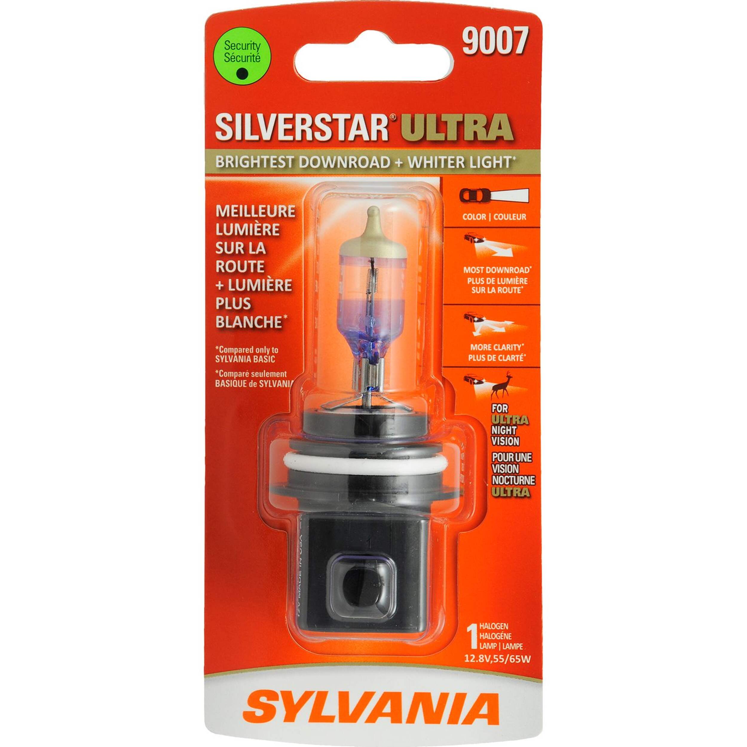 L'ampoule de phare 9007 Sylvania SilverStar ULTRA à halogène est l'ampoule de rechange la plus vive de Sylvania, offrant une lumière blanche et une meilleure clarté.