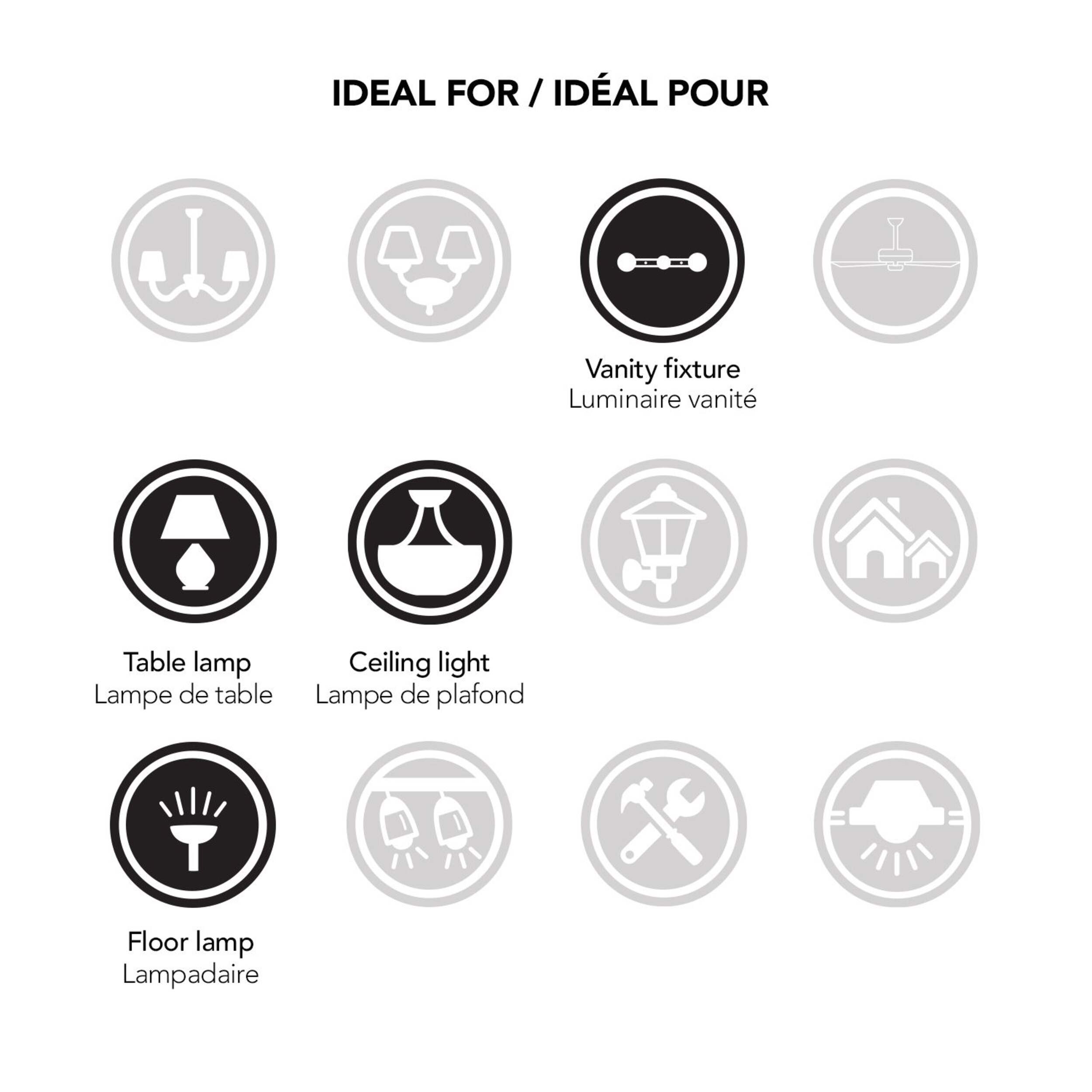 Recommandée pour les appliques de salle de bain, les lampes sur pied, les lampes de table ou les plafonniers