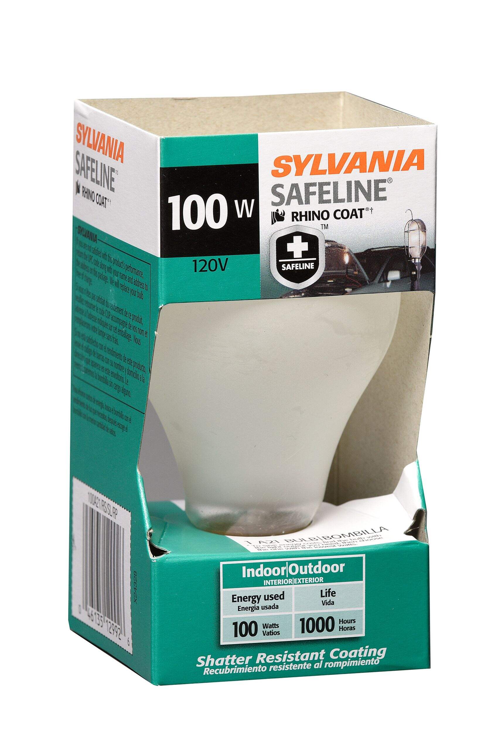 Ampoule incandescente de service intense Sylvania Saf-T-Gard avec enduit de protection au TéflonMD permettant de contenir les éclats de verre en cas de bris