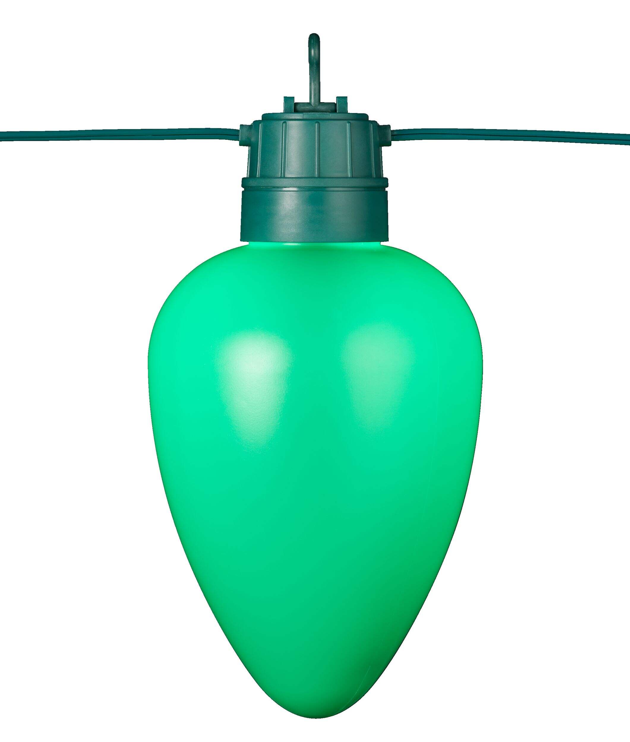 Rehaussez votre décor des Fêtes avec l'ampoule géante C9 For Living, vert. Cette ampoule géante crée un cordon de lumière fin pour une allure décorative. Magnifique et fonctionnelle, l'ampoule bleue est idéale pour éclairer votre chemin et faciliter la navigation. Elle est facile et rapide à installer, donc vous pouvez installer les lumières en quelques minutes. Vous pouvez brancher un maximum de 200 jeux et éclairer votre espace. L'ampoule de Noël de haute qualité mesure 12 po de longueur et a une largeur de 6 po. Puissance totale de 1,44 W avec des fiches aux deux extrémités. De plus, l'ampoule à DEL est écoénergétique et vous offre une longueur éclairée de 148 cm. L'ensemble comprend 2 fusibles de rechange.