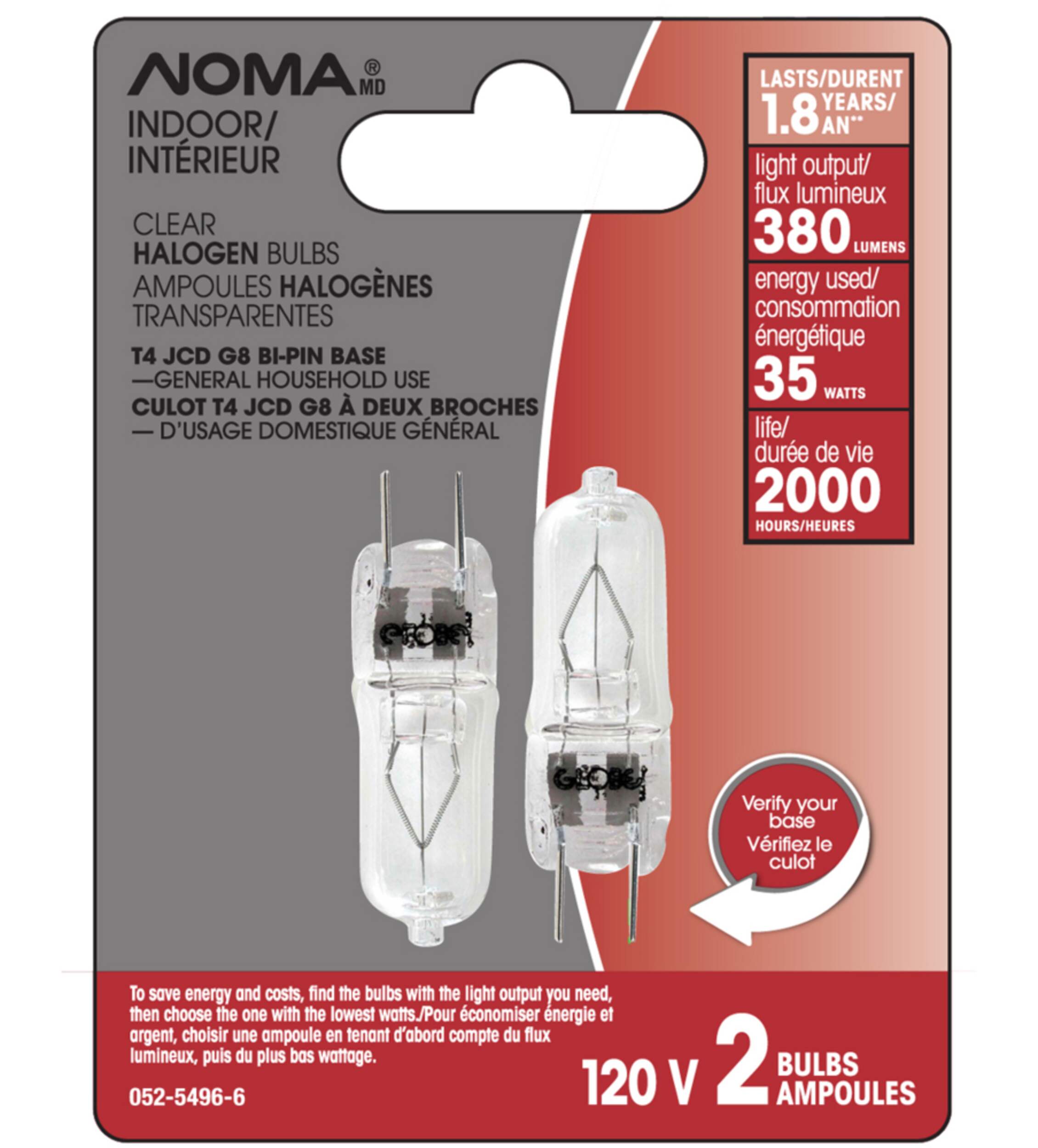 Ampoules halogènes NOMA de 35 W qui produisent 380 lumens et offrent une autonomie de 2 000 heures, ce qui en fait d'excellentes ampoules de rechange