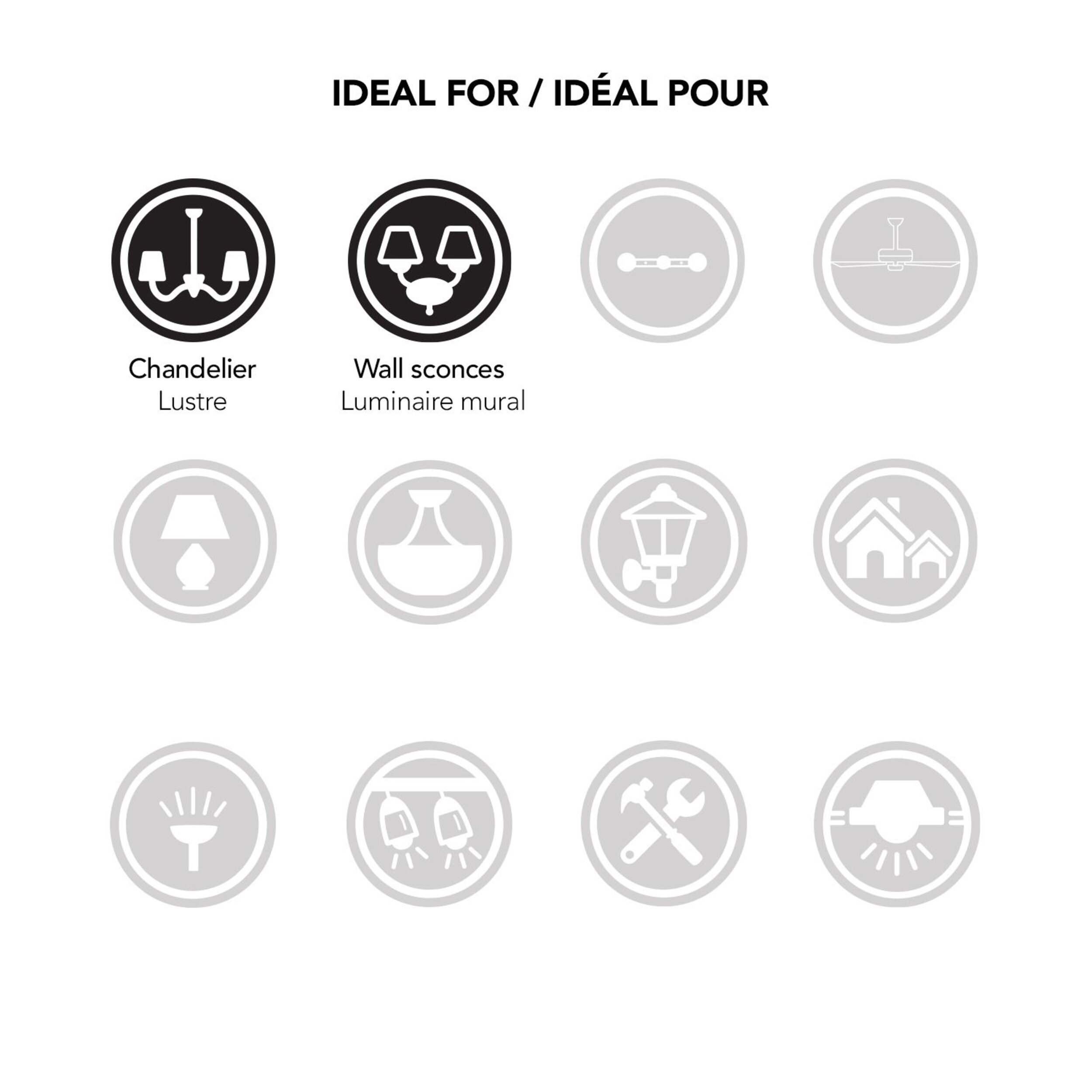 Type d'ampoule : incandescente, à bout arrondi pour lustre