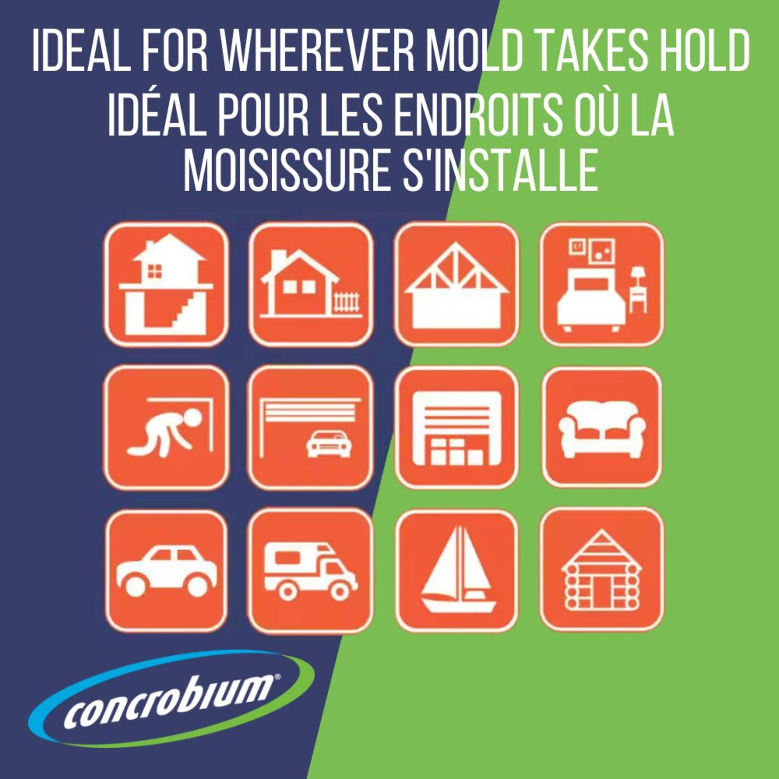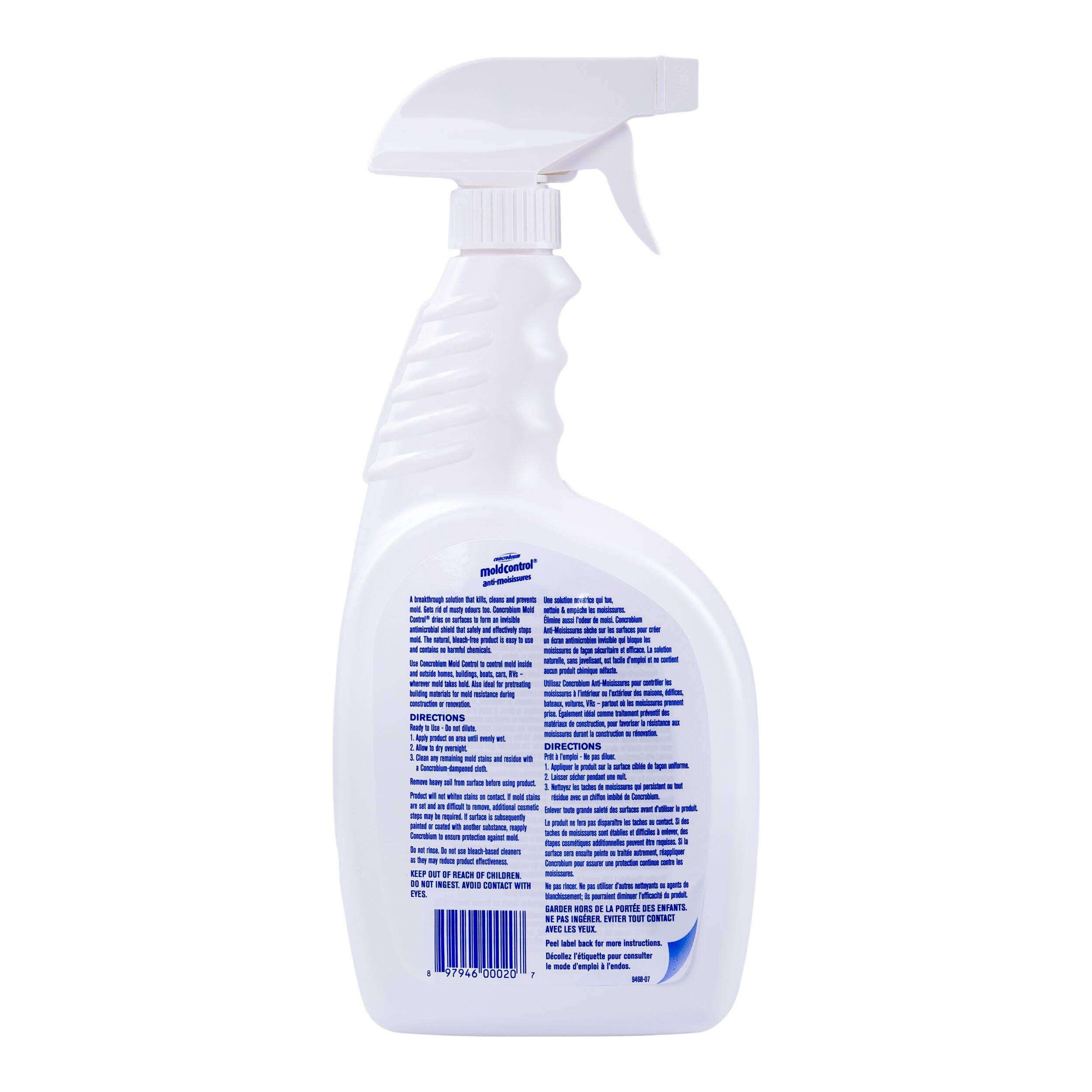 L'antifongicide Concrobium avec pulvérisateur en bouteille est une solution respectueuse de la santé pour lutter contre la moisissure et les odeurs de moisi. Ce vaporisateur antimoisissure est exempt d'eau de Javel, d'ammoniac et de COV, agissant en séchant pour éliminer les spores de moisissure à la source et laissant un bouclier antimicrobien invisible sur les surfaces pour dissuader la croissance future de la moisissure. Il est idéal pour une utilisation sur une variété de surfaces, notamment le placoplâtre, le béton, le bois et le plastique, et convient aux espaces tels que les sous-sols, les salles de bains et les intérieurs de voiture. La formule inodore et incolore est enregistrée par Santé Canada et est efficace même sur les surfaces en tissu.