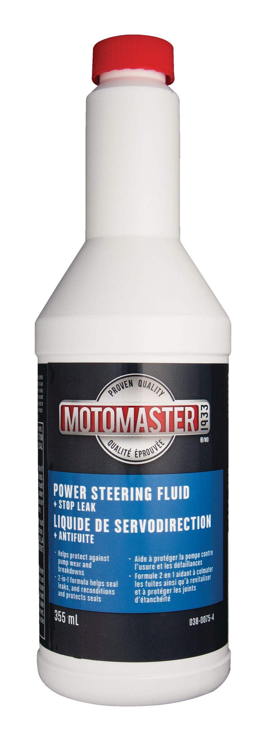Le liquide de servodirection et antifuite MotoMaster est conçu pour améliorer le rendement de votre système de direction en scellant les fuites, en protégeant les joints d'étanchéité et en revitalisant les pièces internes. Ce liquide de servodirection peut remplacer les liquides de servodirection ordinaires pour un entretien préventif.