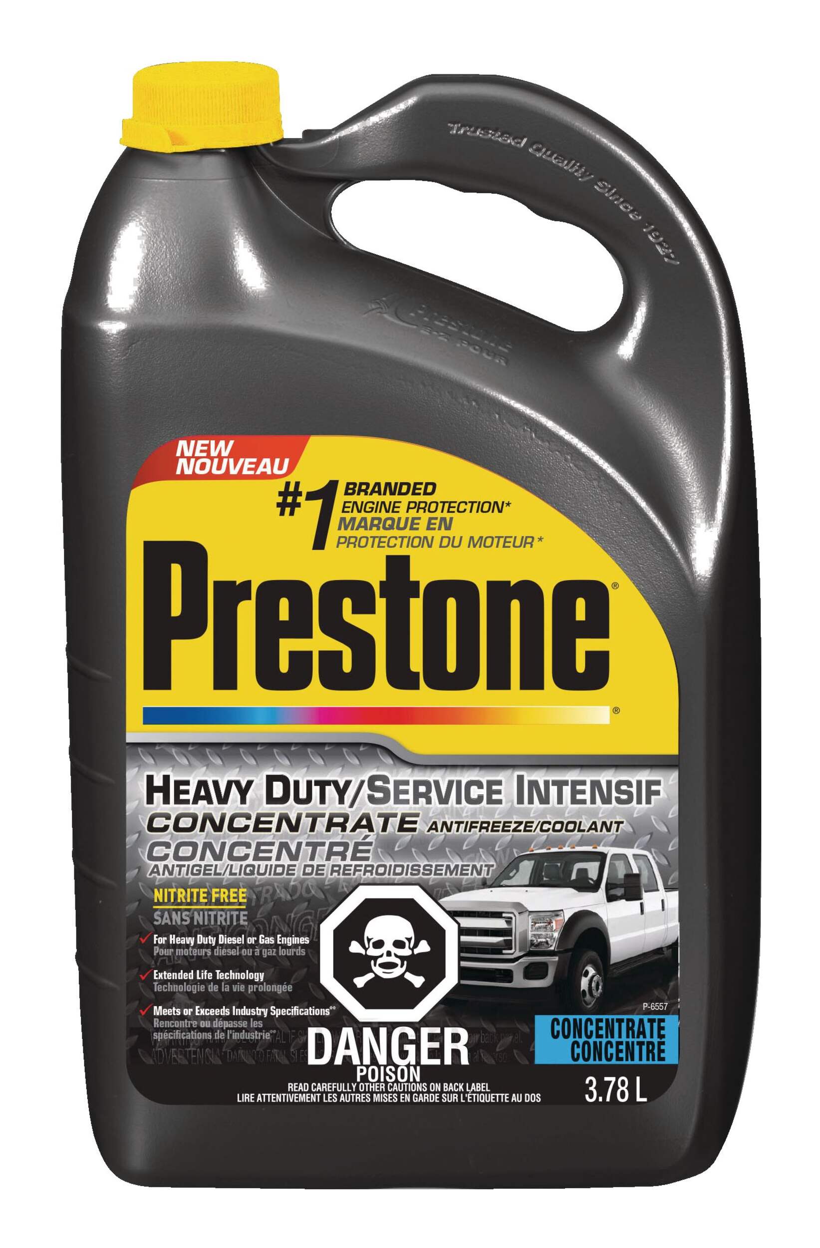 L'antigel et liquide de refroidissement concentré Prestone de service intense est spécialement conçu pour les véhicules de remorquage et de transport de personnes, de bateaux et de marchandises. Formulé pour les moteurs à essence et diesel, le liquide de refroidissement Prestone optimise la température du moteur pour les trajets les plus exigeants. Conçus selon les normes les plus élevées et utilisant une technologie de pointe, ces liquides sont conçus pour gérer simultanément la température du moteur et protéger contre le gel. Évitez les réparations coûteuses et gardez vos véhicules sur la route avec l'antigel + liquide de refroidissement Prestone.