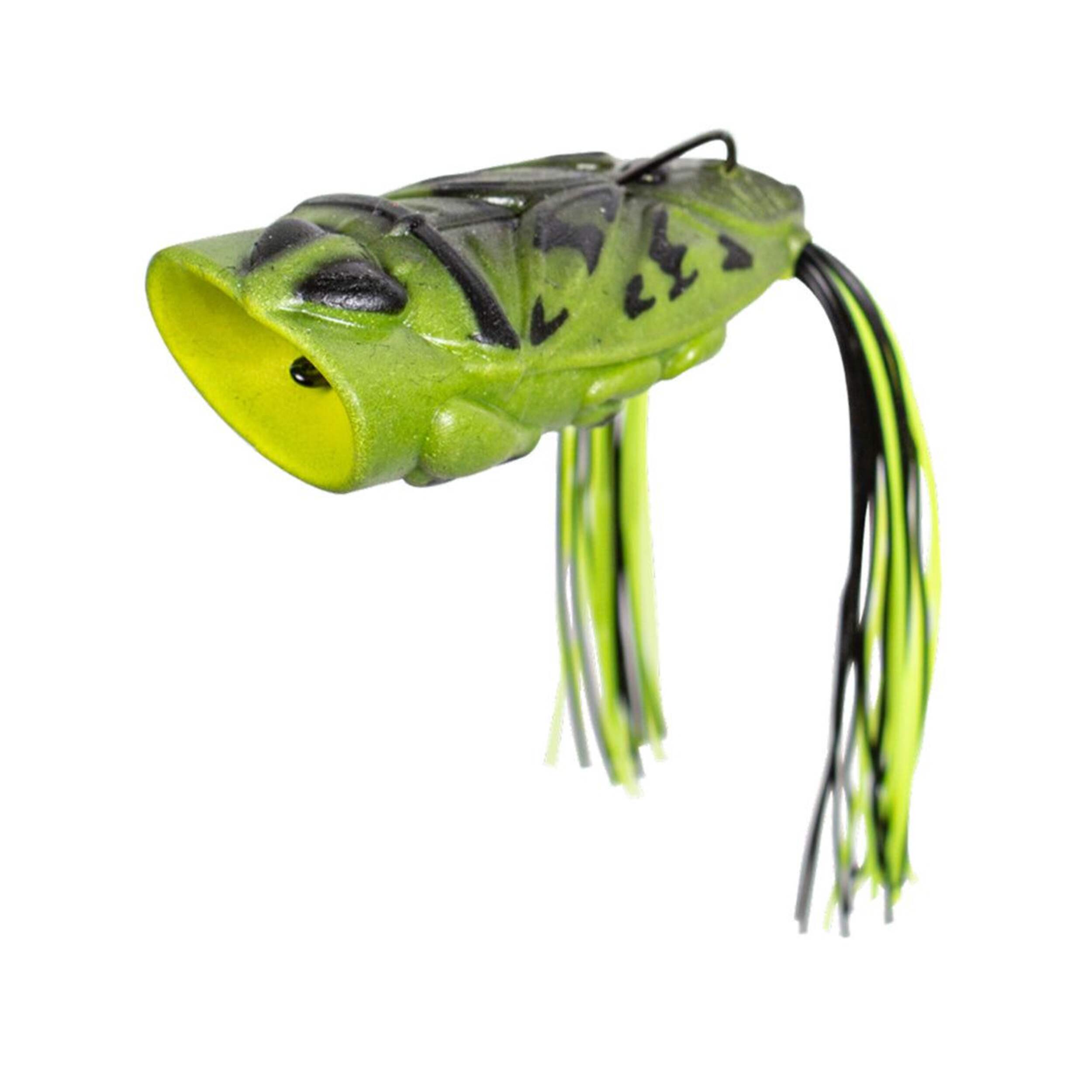 POPPING BUG - Le Popping Bug de Lunkerhunt flotte haut et est très résistant. Il saute et fait gargouiller l'eau quand vous tirez votre ligne, et tombe dès que vous arrêtez. Ce leurre est conçu pour être utilisé avec un hameçon large de 4/0 pour pêcher dans un fond sans herbe.