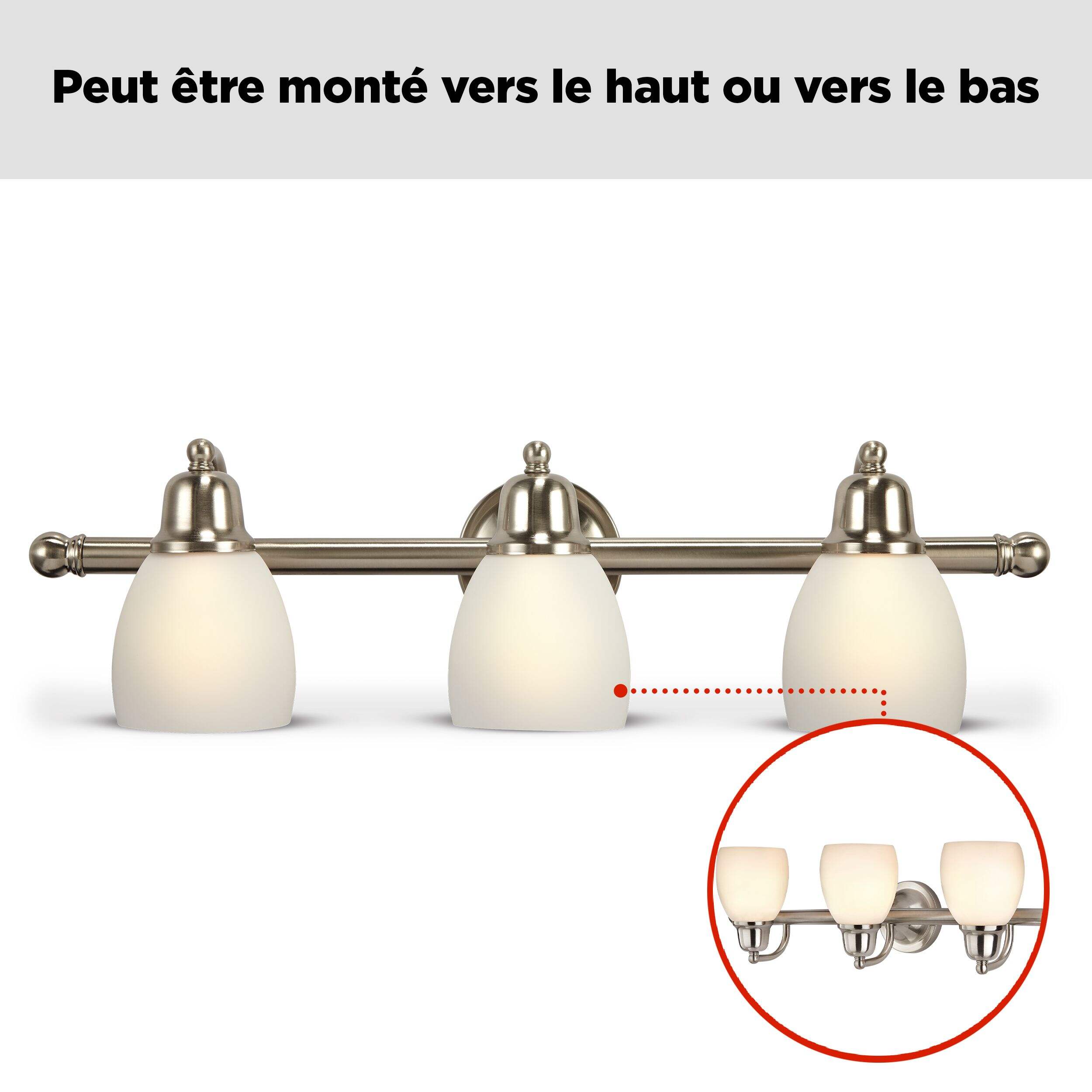 Nécessite 3 ampoules à culot moyen de 60 W à incandescence ou ampoules E26 équivalentes (non comprises)