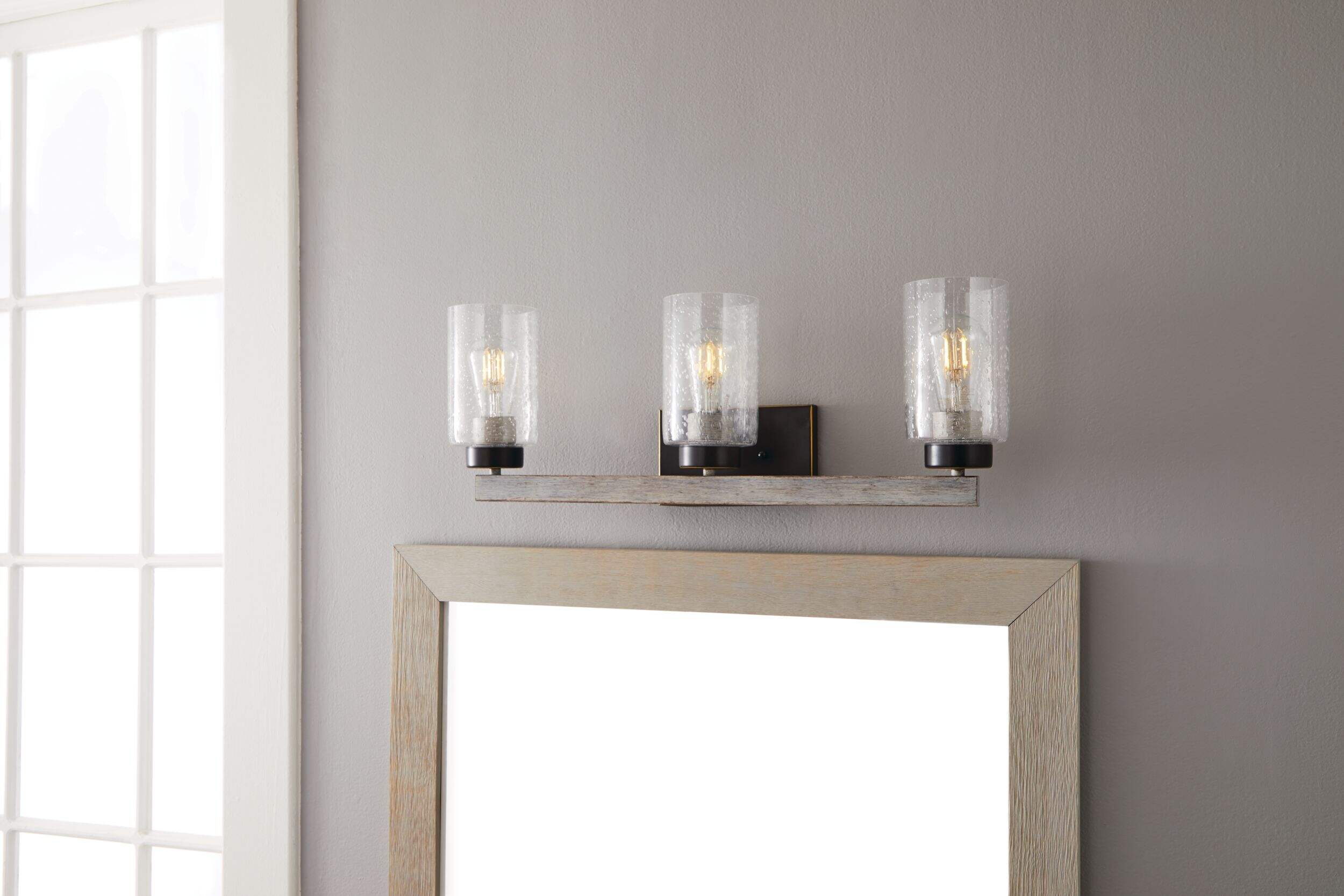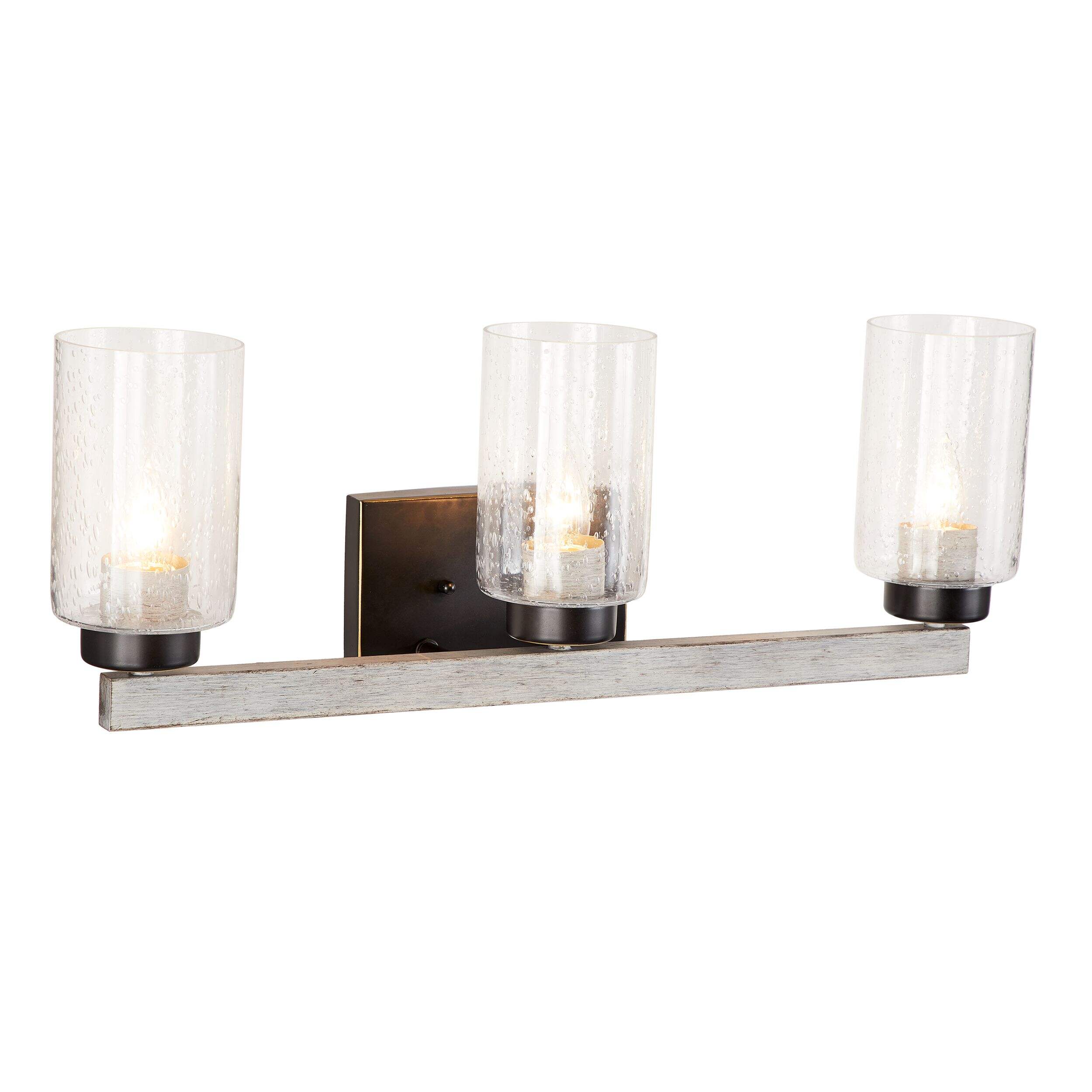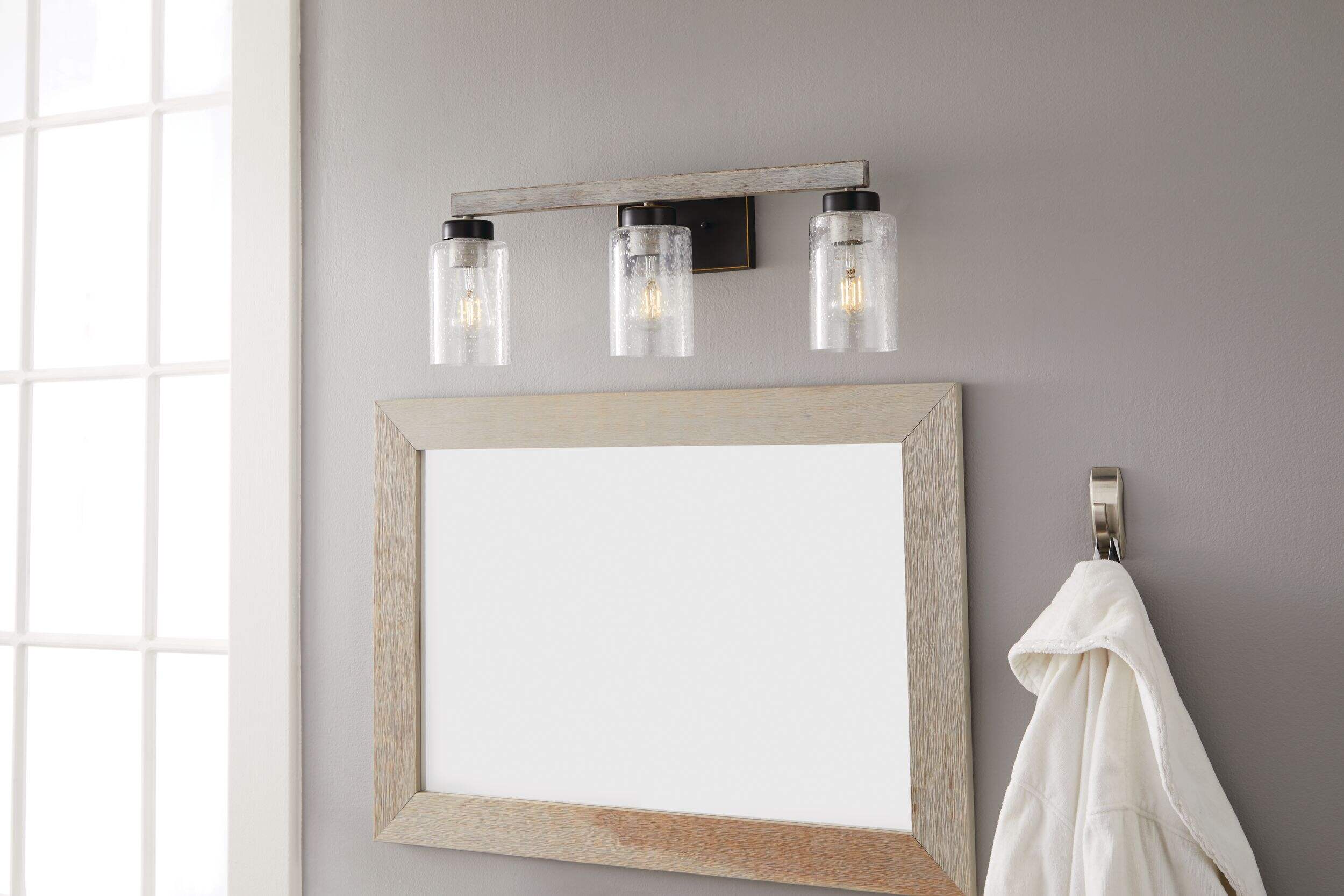 Doté de trois lampes sur le même luminaire, l'applique de salle de bain à 3 lampes CANVAS Vittoria est un ajout idéal à toute salle de bain ou cuisine élégante. Matériau en acier audacieux et bois gris discret avec fini en métal bronze noir offrant un style élégant et sophistiqué qui s'harmonisera à n'importe quel décor contemporain et ampoules 60 W offrant une lumière vive et pratique qui est idéale lorsque vous faites de la vaisselle dans la cuisine ou que vous vous préparez dans la salle de bain. Abat-jour en verre puceux aidant à adoucir la lumière des ampoules, pour que cette applique ne soit pas dure, agressive ou peu flatteuse. Type d'éclairage confortable particulièrement important devant un miroir de salle de bain où vous vous maquillerez ou vous préparerez pour le travail. Comme il y a 3 ampoules sur cette applique de salle de bain, elle est idéale pour les salles de bain avec 2 éviers côte à côte ou pour les comptoirs et les éviers de cuisine où vous passez du temps à faire la vaisselle et à préparer les aliments. Pour plus de commodité et de style, vous pouvez installer cette applique de salle de bain vers le haut ou vers le bas pour convenir à votre décor. Il suffit d'installer cette applique murale polyvalente au-dessus de votre évier de salle de bain ou de votre évier de cuisine pour une solution d'éclairage à la mode et fonctionnelle là où vous en avez le plus besoin.