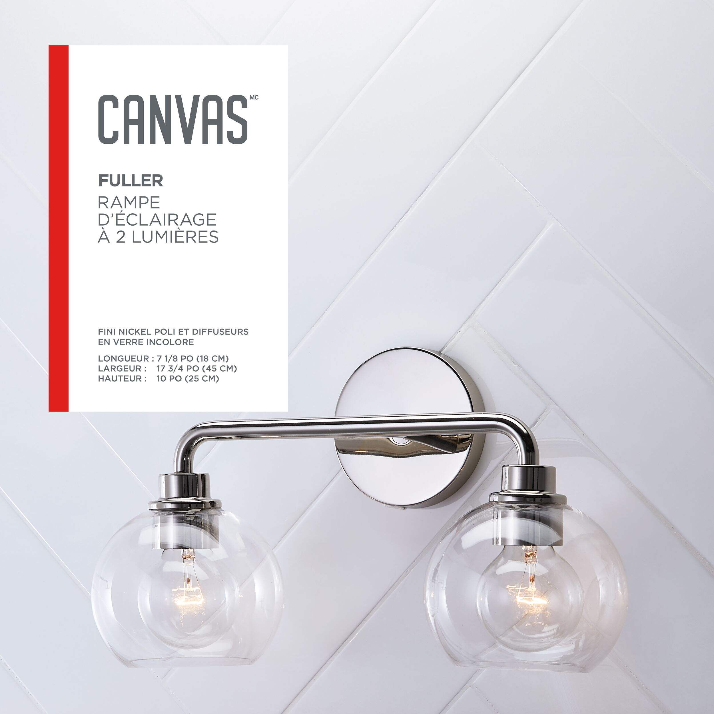 Égayez votre salle de bain avec l’applique de salle de bains à 2 lampes CANVAS Fuller