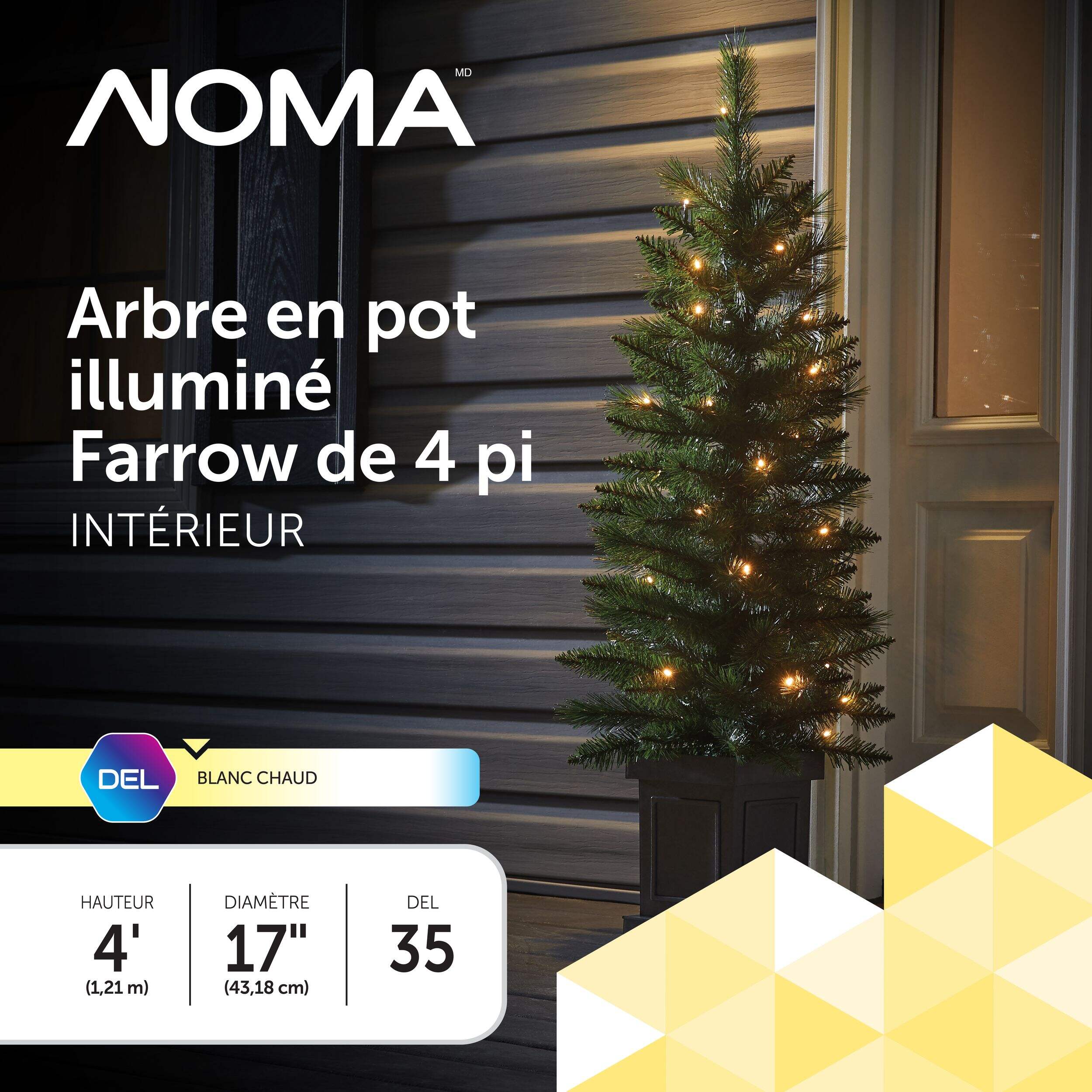 D'une hauteur de 4 pi et pesant un peu moins de 8 lb, l'arbre de Noël en pot à piles NOMA Farrow est un ajout élégant dans toute entrée, tout bureau ou tout espace intérieur de maison. Disposé dans un pot décoratif léger et discret, ce sapin de Noël artificiel est doté de 105 branches réalistes en PVC et offre de l'espace pour suspendre vos décorations et guirlandes de Noël préférées. Les ampoules à DEL sont alimentées par des piles AA et parfaites pour illuminer chaleureusement vos fêtes de fin d'année.