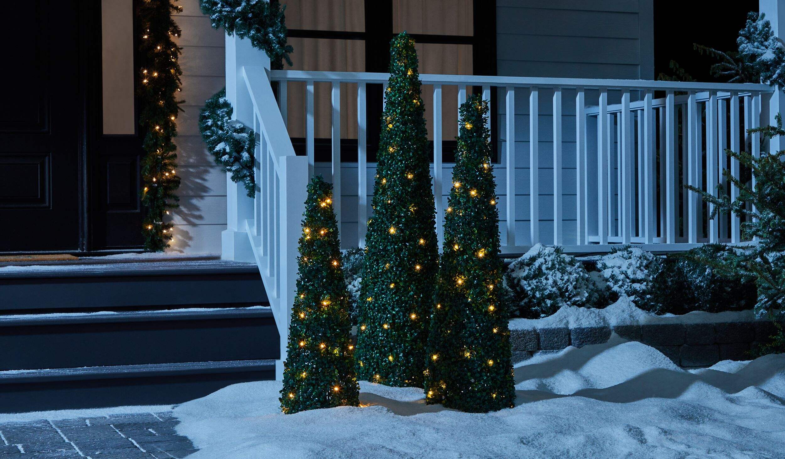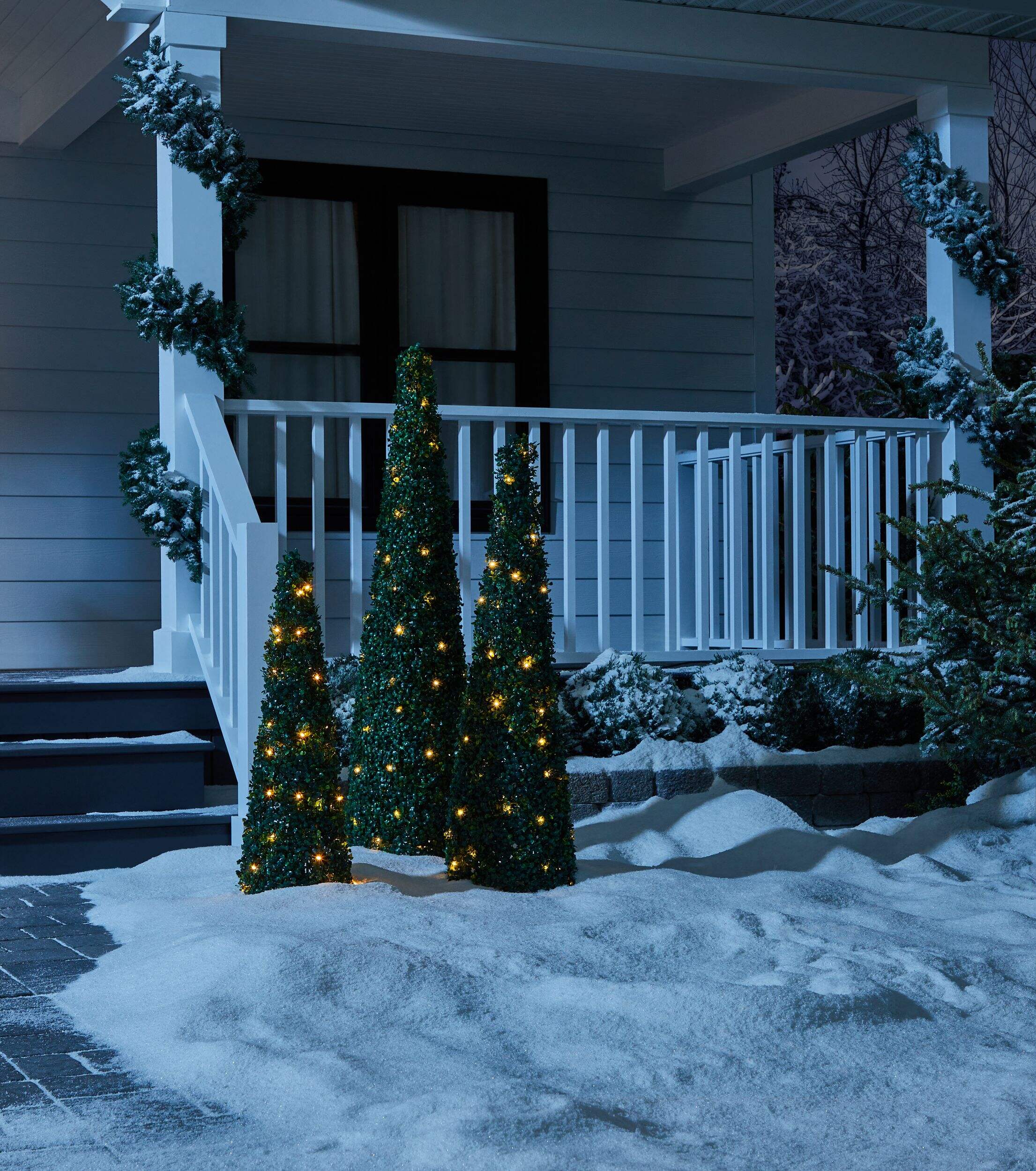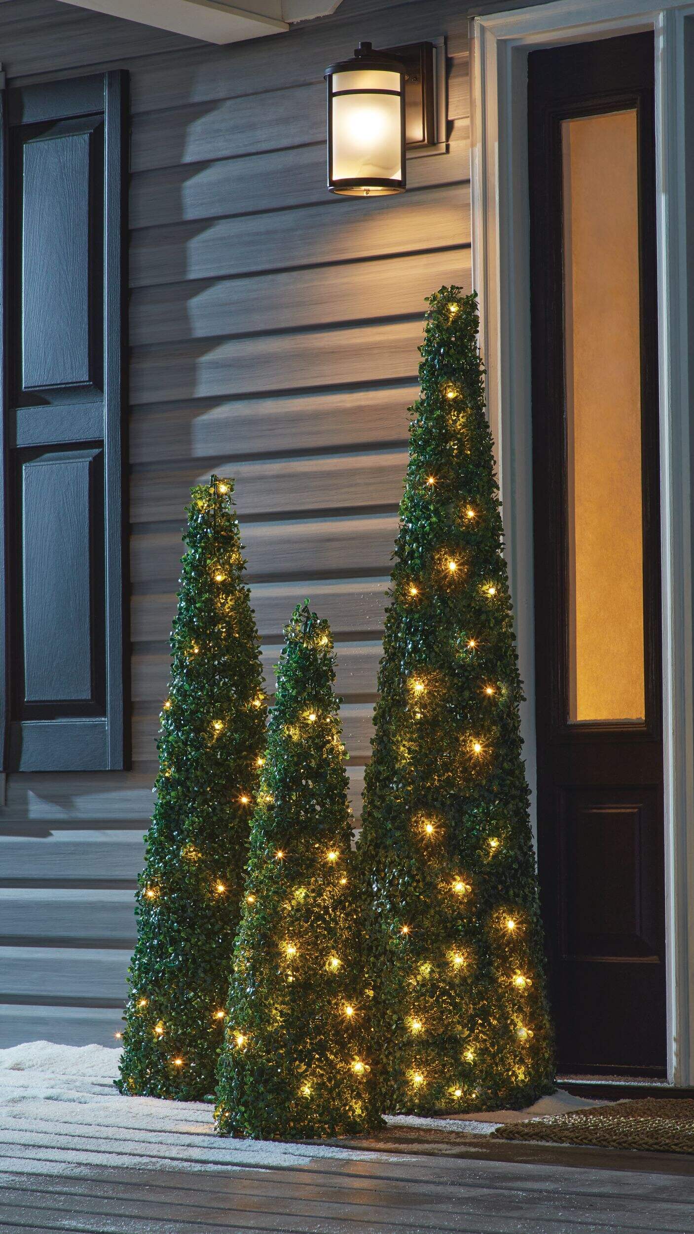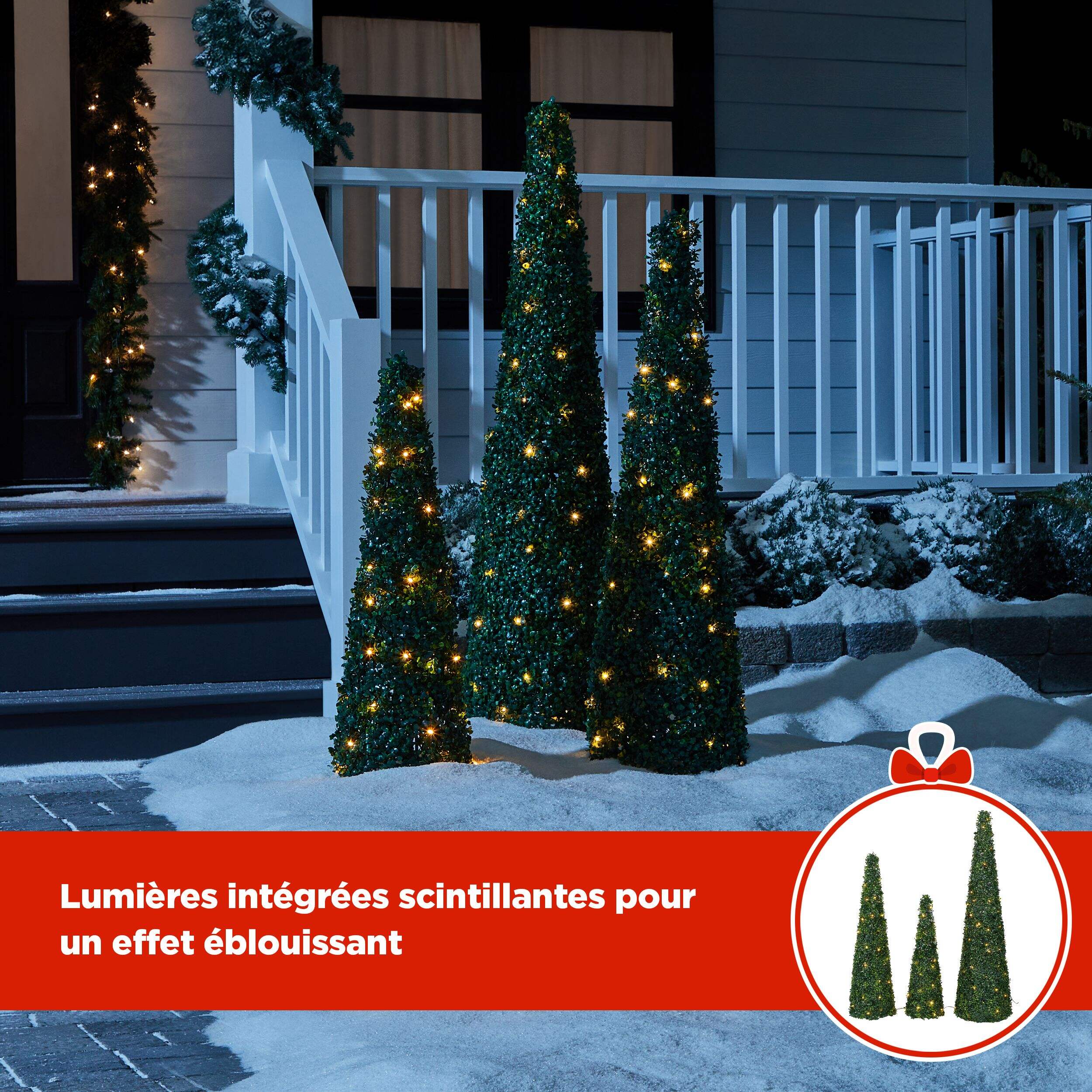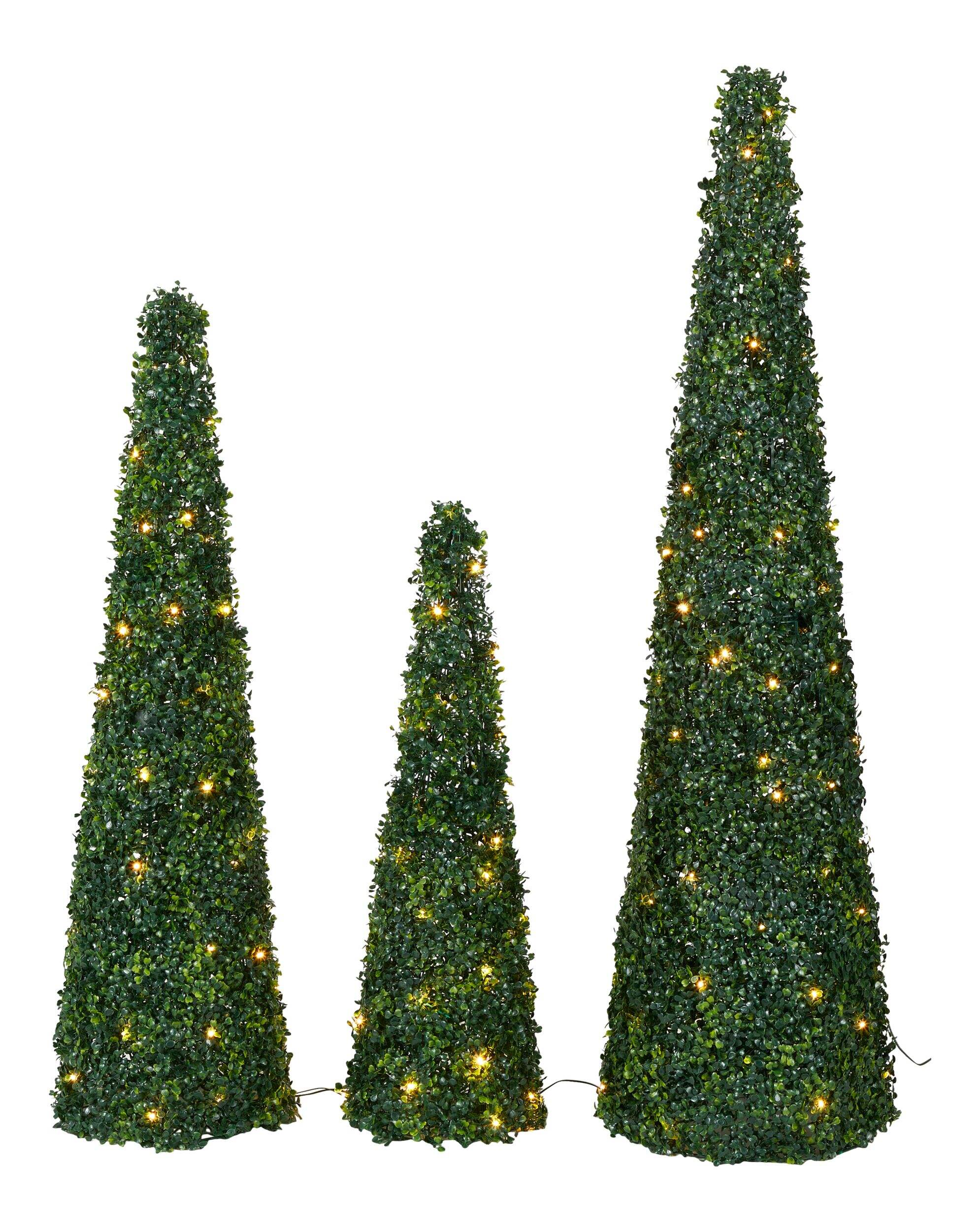 Arbres topiaires coniques scintillants Canvas à feuillage vert foncé ajoutant des éléments naturels à votre jardin
