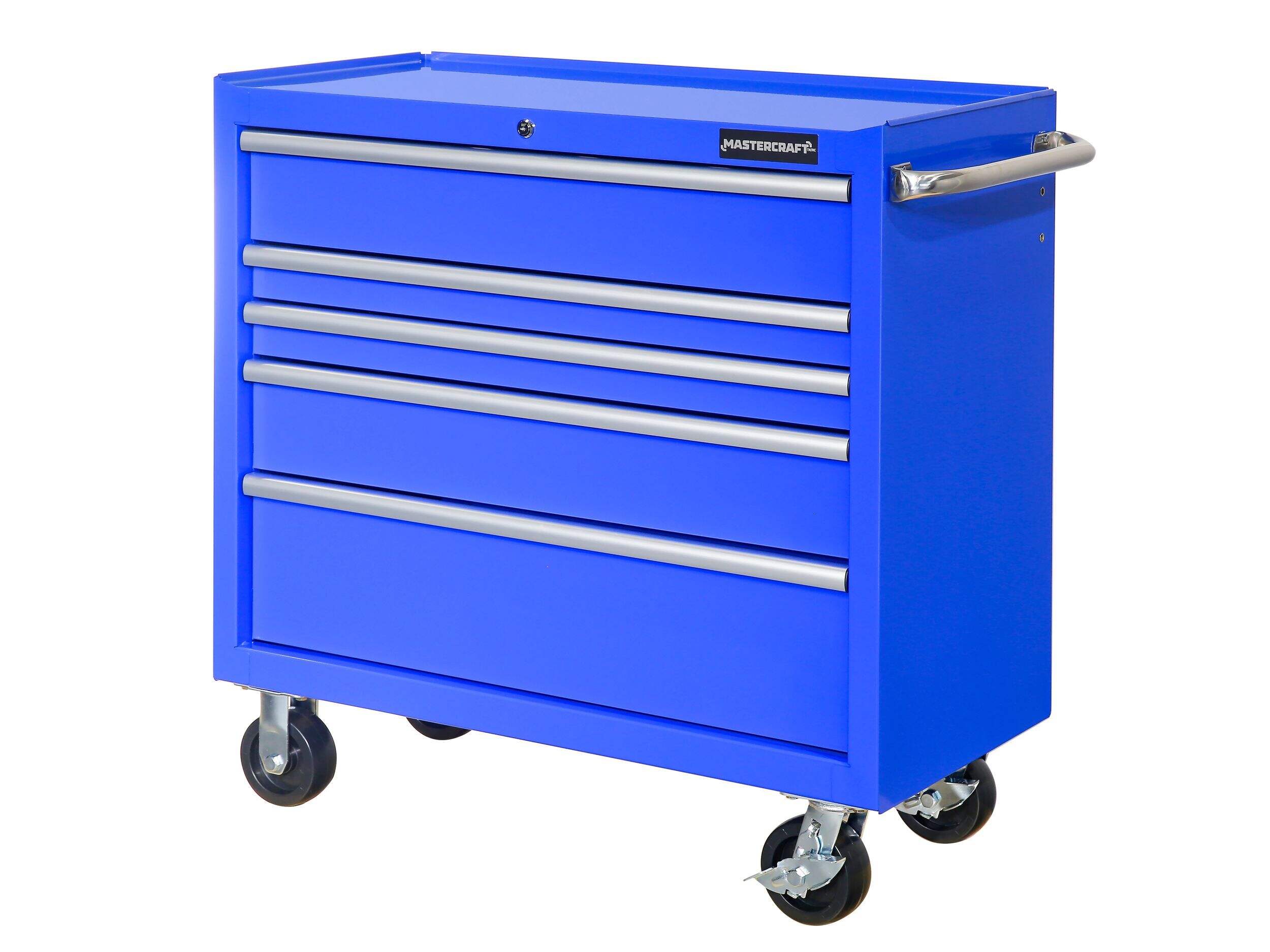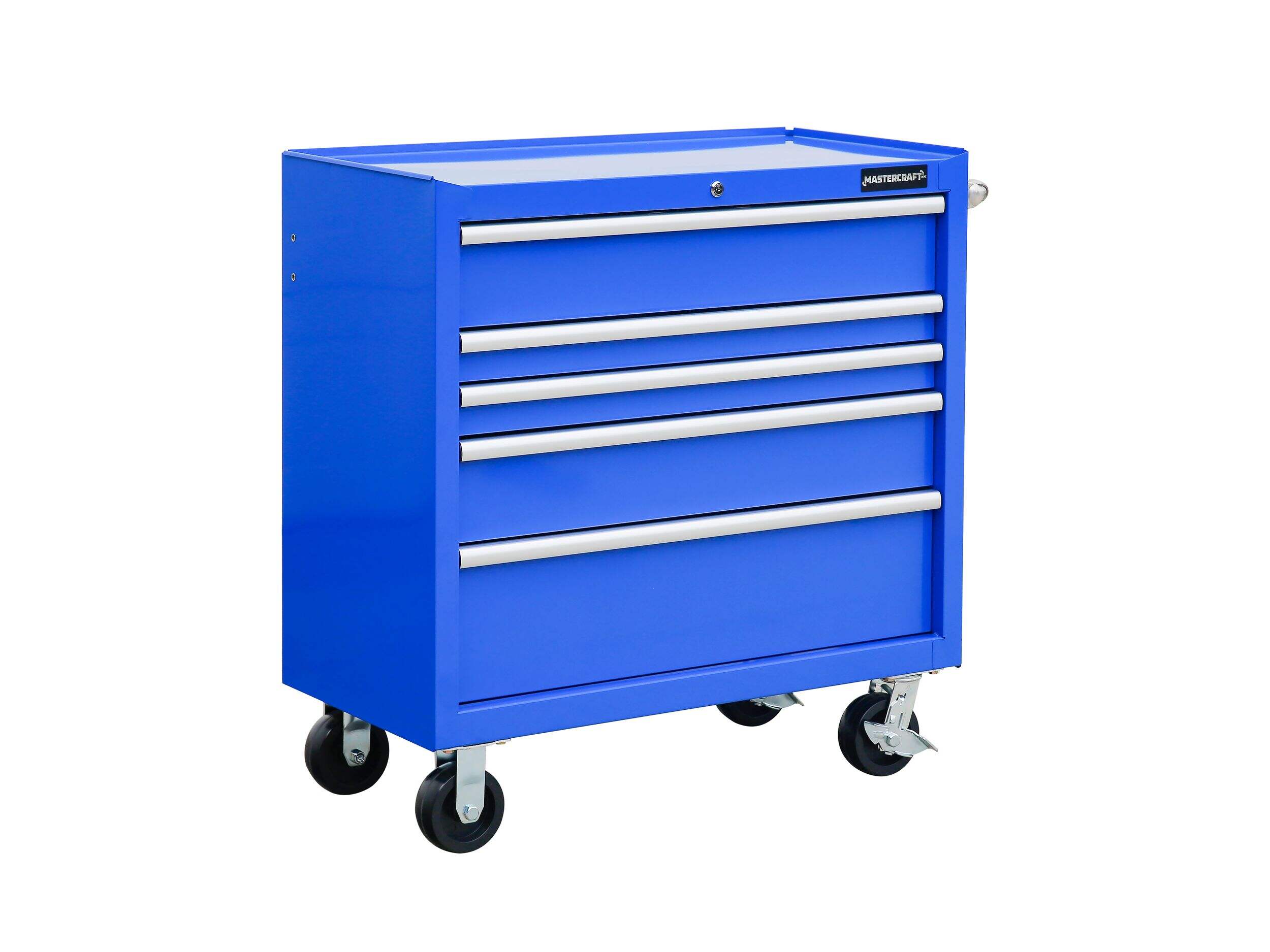 Organisez vos outils efficacement avec l'armoire à outils en acier peint par poudrage Mastercraft. Cette armoire robuste est dotée d'un élégant fini bleu ainsi que d'une poignée latérale pour faciliter les déplacements. Dotée de 5 tiroirs spacieux, elle offre amplement d'espace de rangement pour tous vos outils et fixations, tout en offrant un accès rapide et une organisation efficace à l'atelier.
