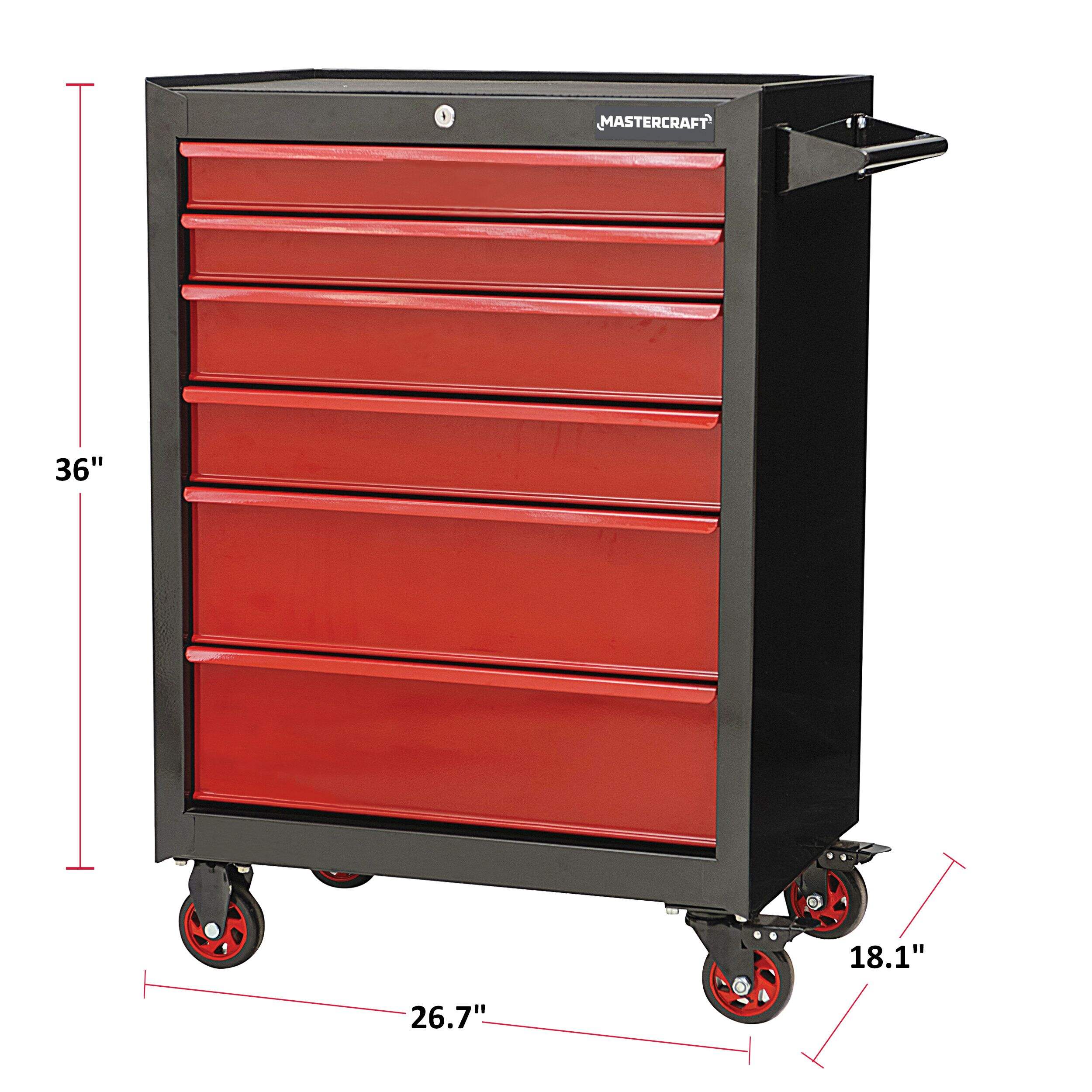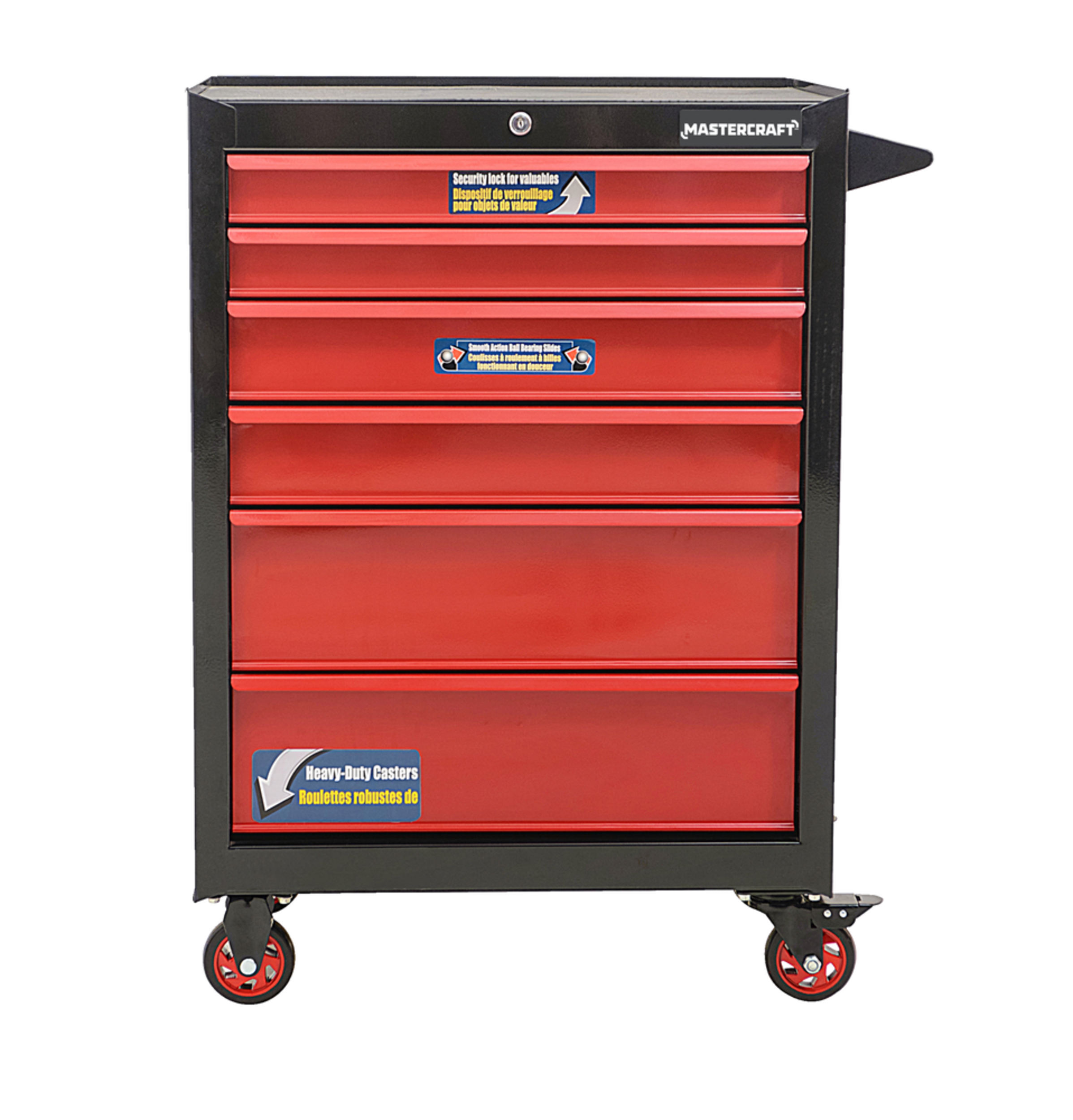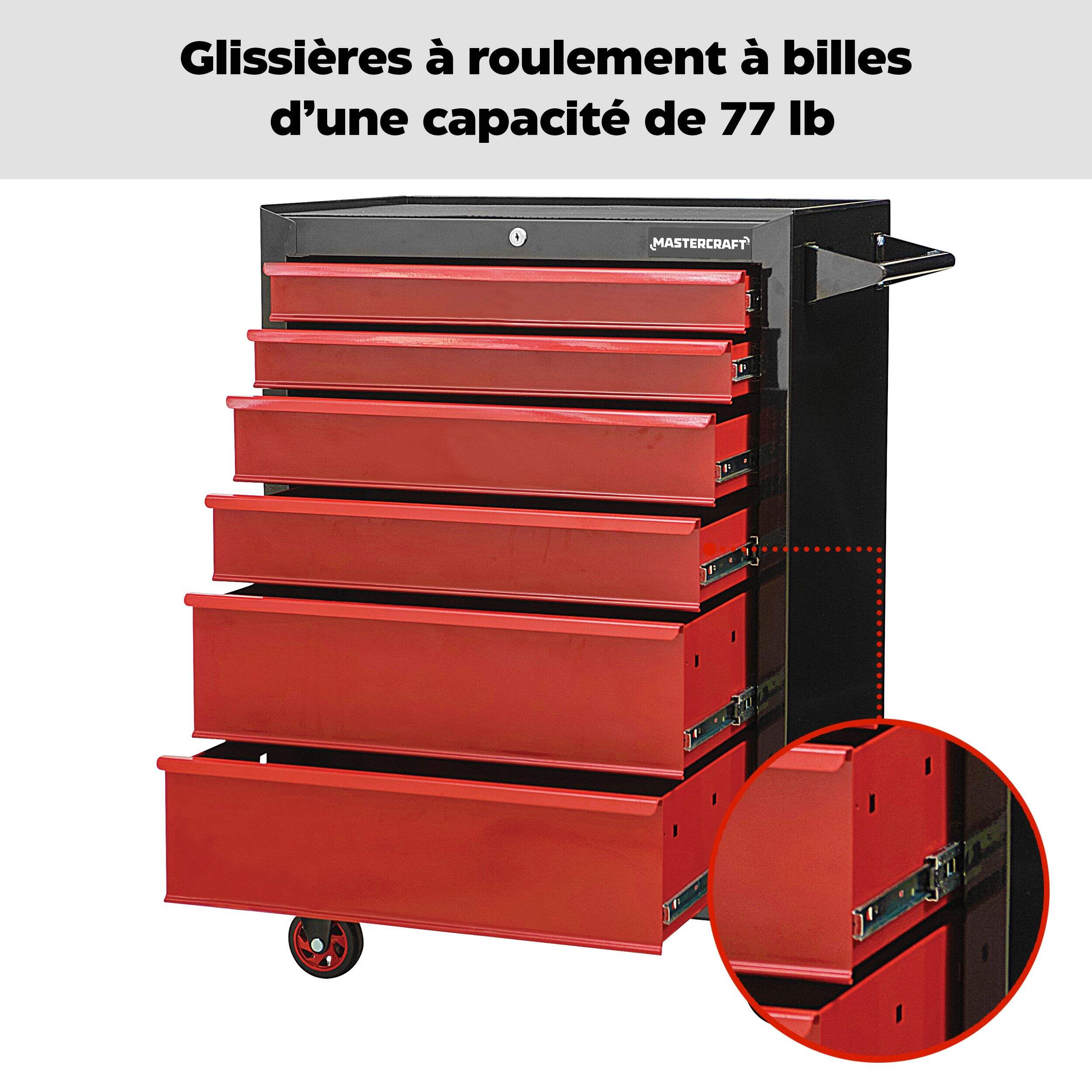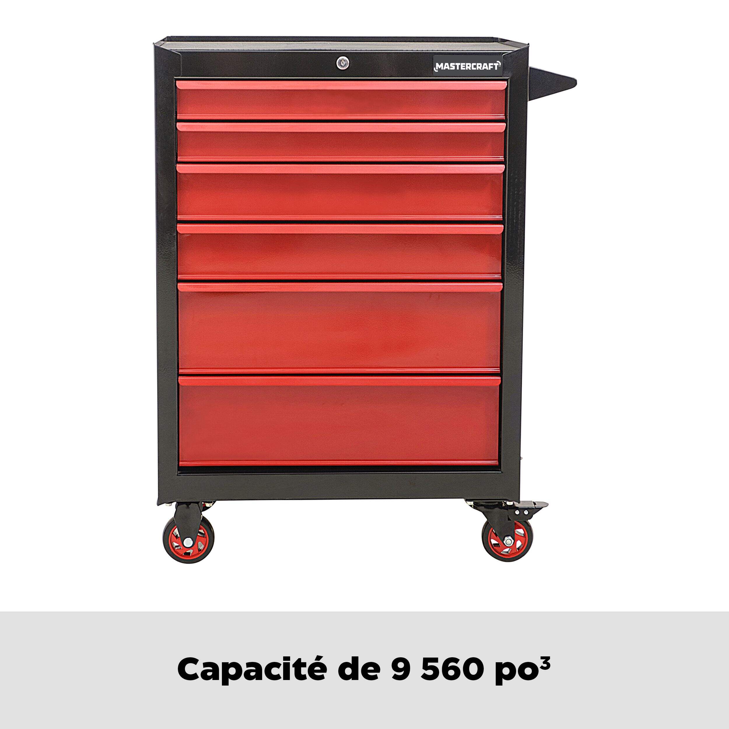 L'armoire à 6 tiroirs Mastercraft de 26 po est un choix idéal pour ranger vos outils et votre équipement et comprend un système de verrouillage interne pour une sécurité accrue. Cette armoire est dotée de six tiroirs qui s'ouvrent en douceur sur des glissières à roulement à billes de 77 lb, et les différentes profondeurs des tiroirs vous permettent de ranger des outils de toutes formes et tailles. Idéale pour les ateliers automobiles ou à la maison, cette armoire à outils de grande taille offre amplement d'espace pour ranger tous vos outils et organiser votre espace de travail.