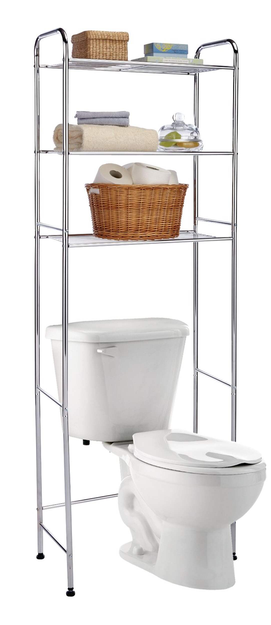 Étagère Nautilus en chrome, convient parfaitement pour du rangement au-dessus de la toilette