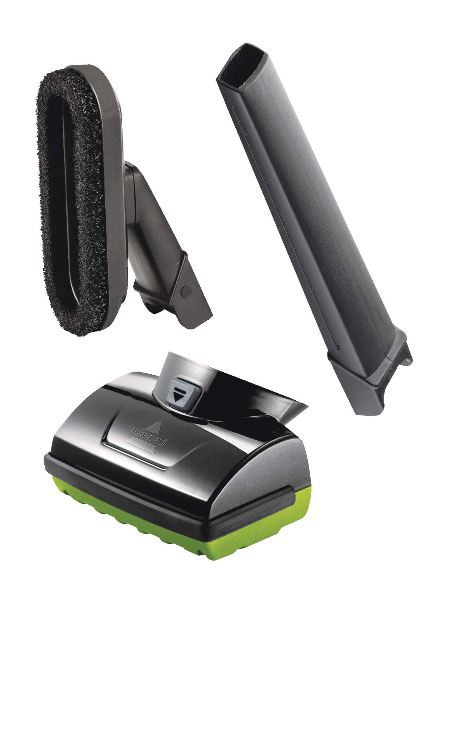 Trousse d'accessoires : embout motorisé amovible, suceur plat, brosse pour les meubles avec feutre