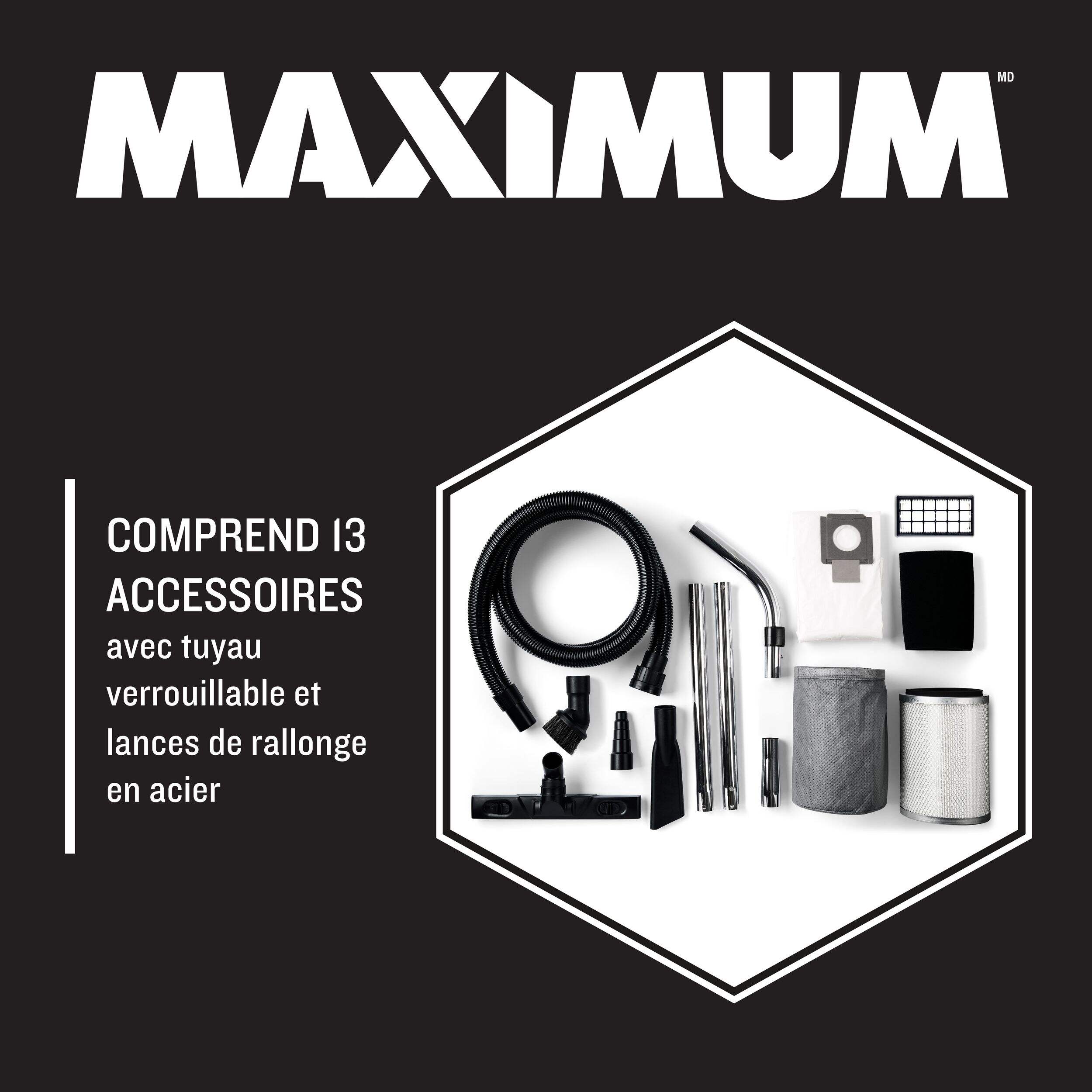 Aspirateur de déchets secs/humides MAXIMUM certifié HEPA qui est équipé d'un système de filtration efficace pour éliminer la poussière, les squames et les allergènes courants