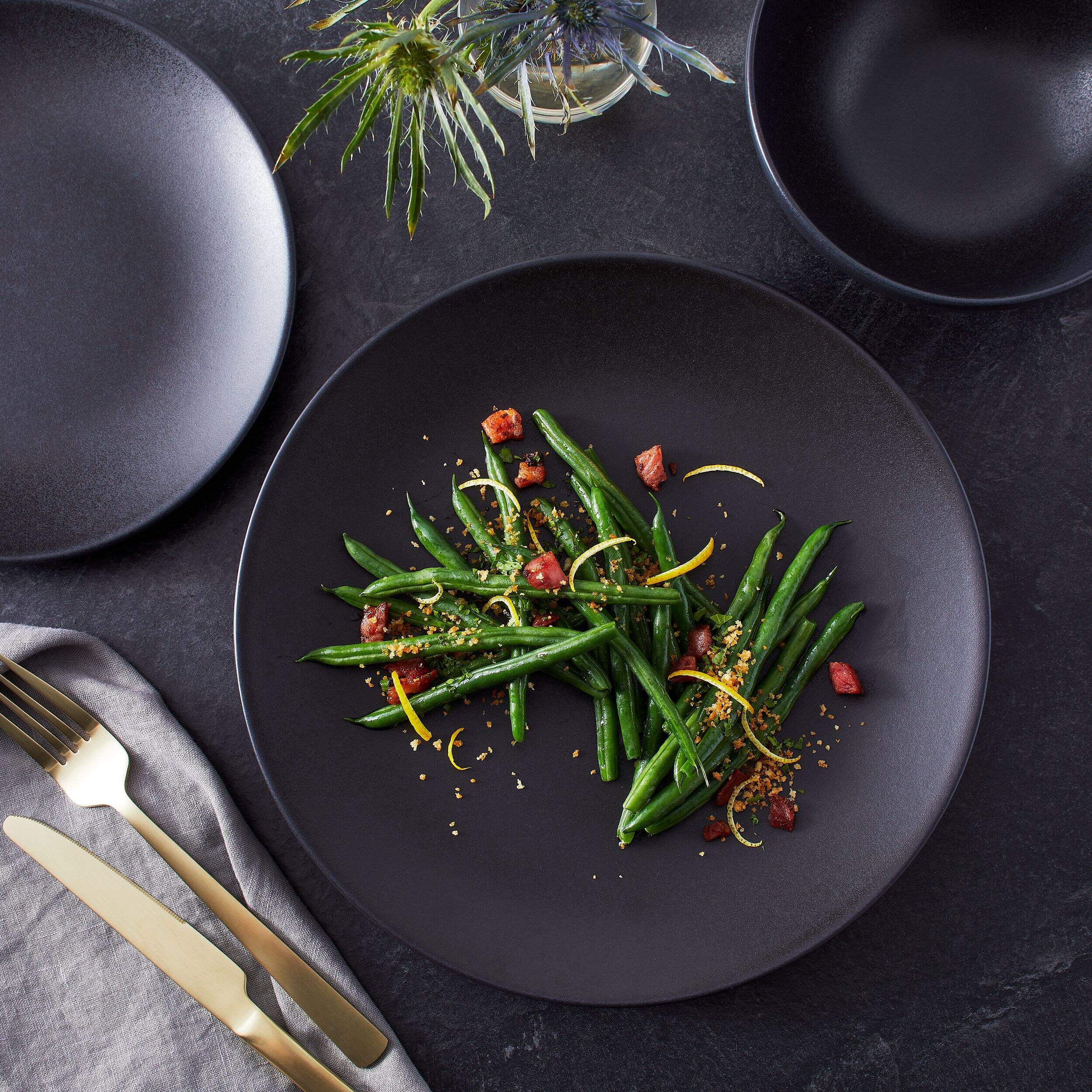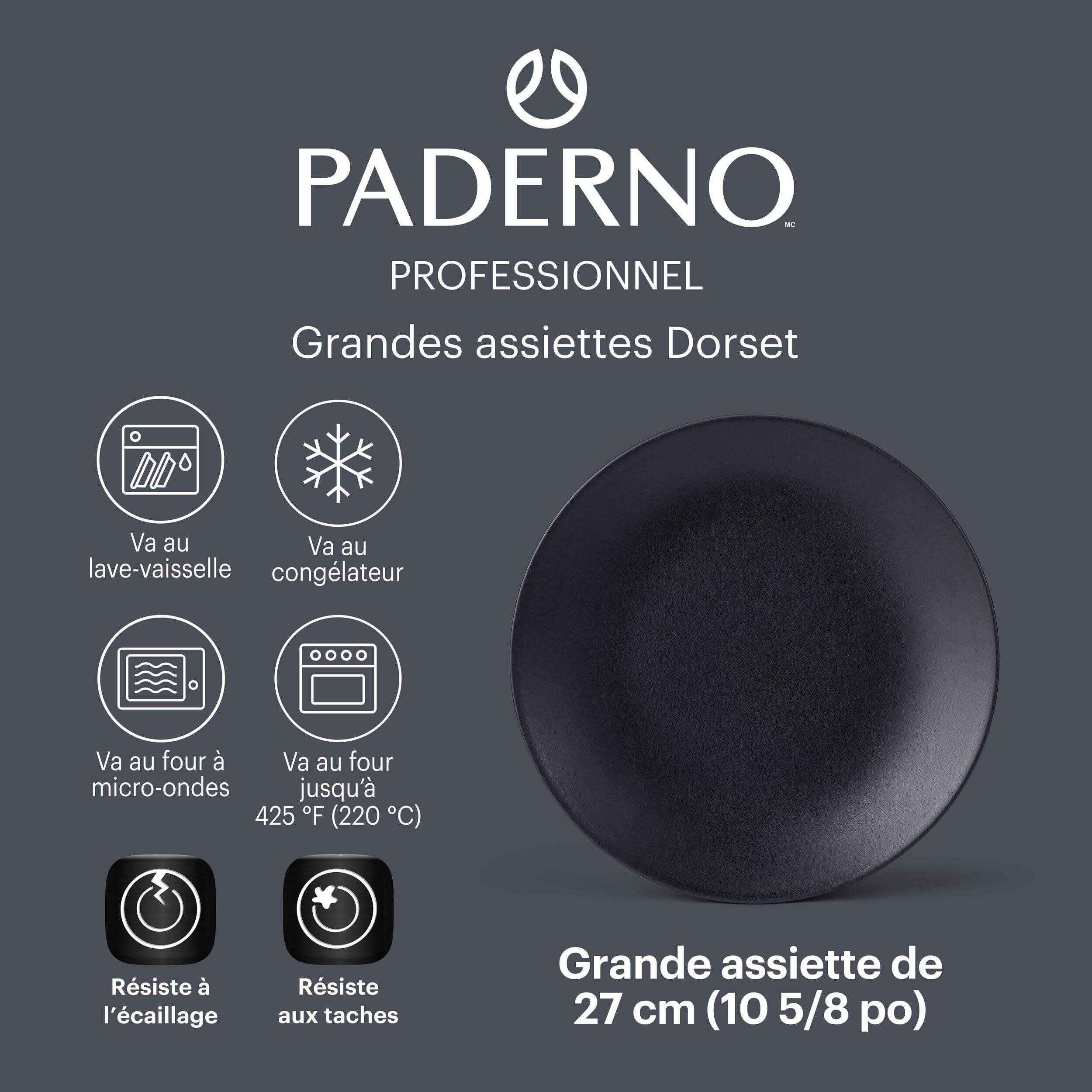 Rehaussez votre expérience culinaire avec l'ensemble de plats en grès Dorset de Paderno. Cet ensemble comprend une vaisselle magnifiquement conçue avec un superbe fini noir à glaçure réactive qui ajoute une touche d'élégance à n'importe quelle table. Confectionnées en grès résistant, ces assiettes sont résistantes au four et combinent une fonctionnalité pratique avec un style élégant.