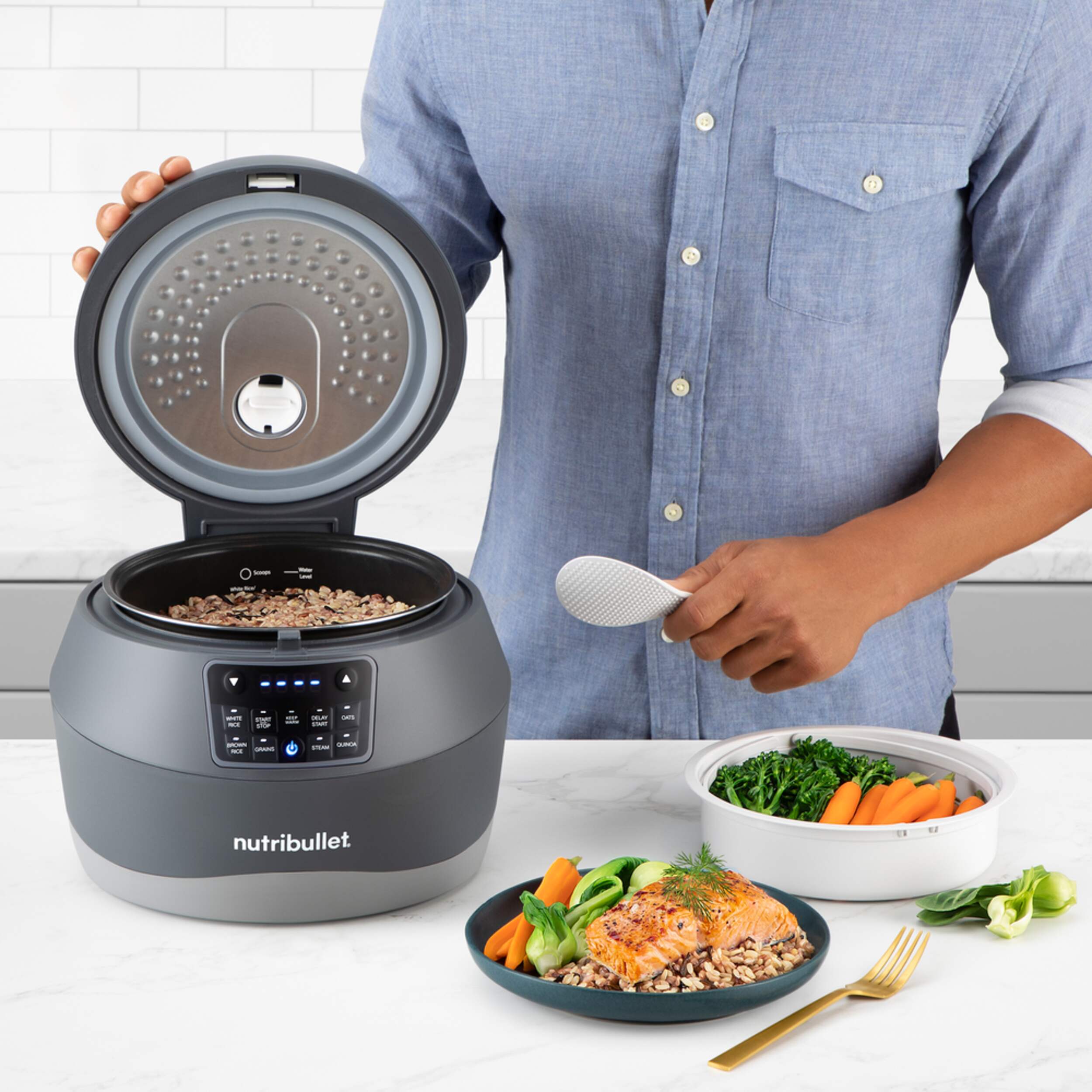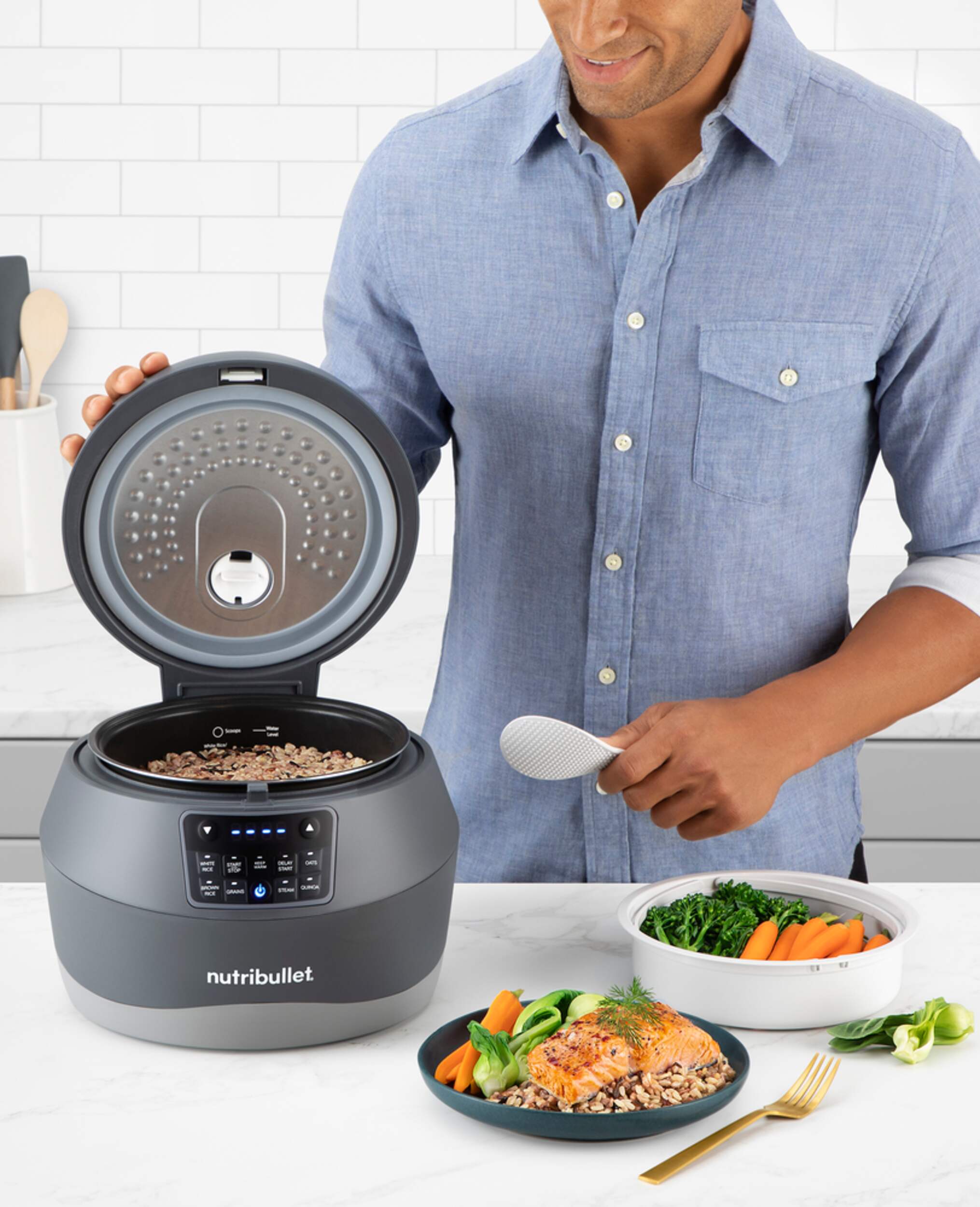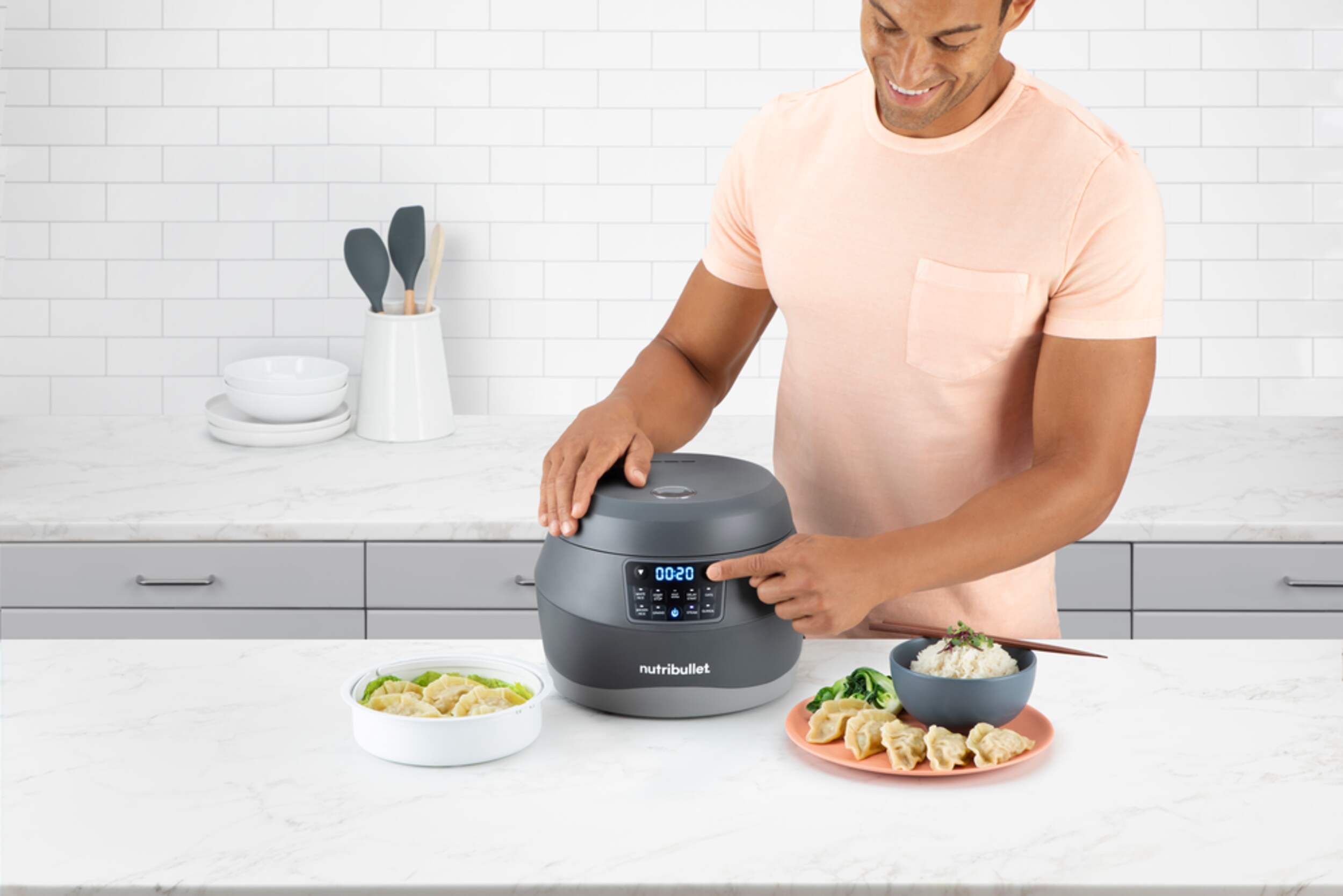 Cuiseur NutriBulletMD EveryGrainMC qui permet de préparer des grains parfaits à tout coup, du riz au farro en passant par le quinoa