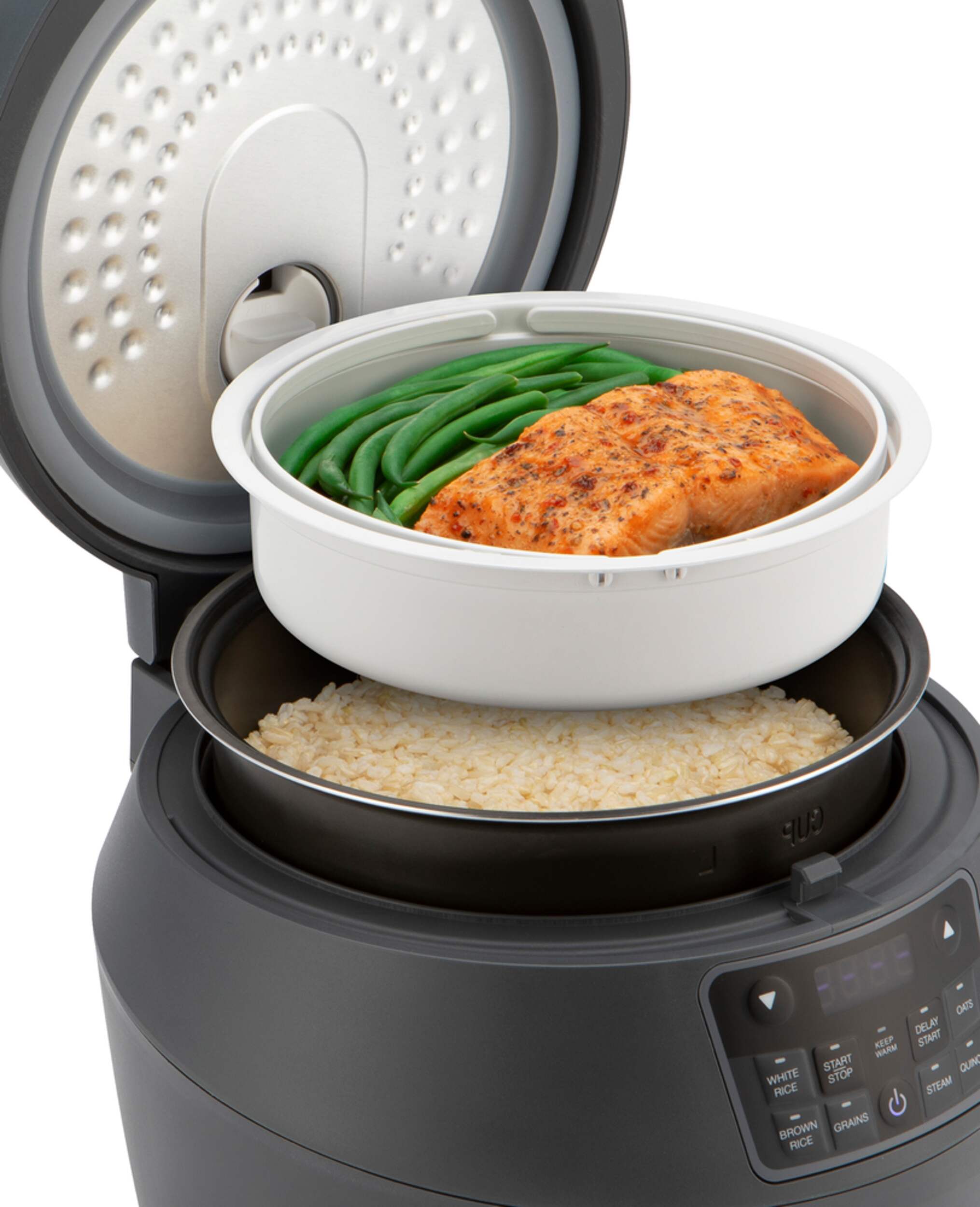 Des réglages prédéfinis pour cuire toutes les céréales, ainsi qu'un programme de cuisson à la vapeur pour les légumes, le poisson et d'autres aliments.