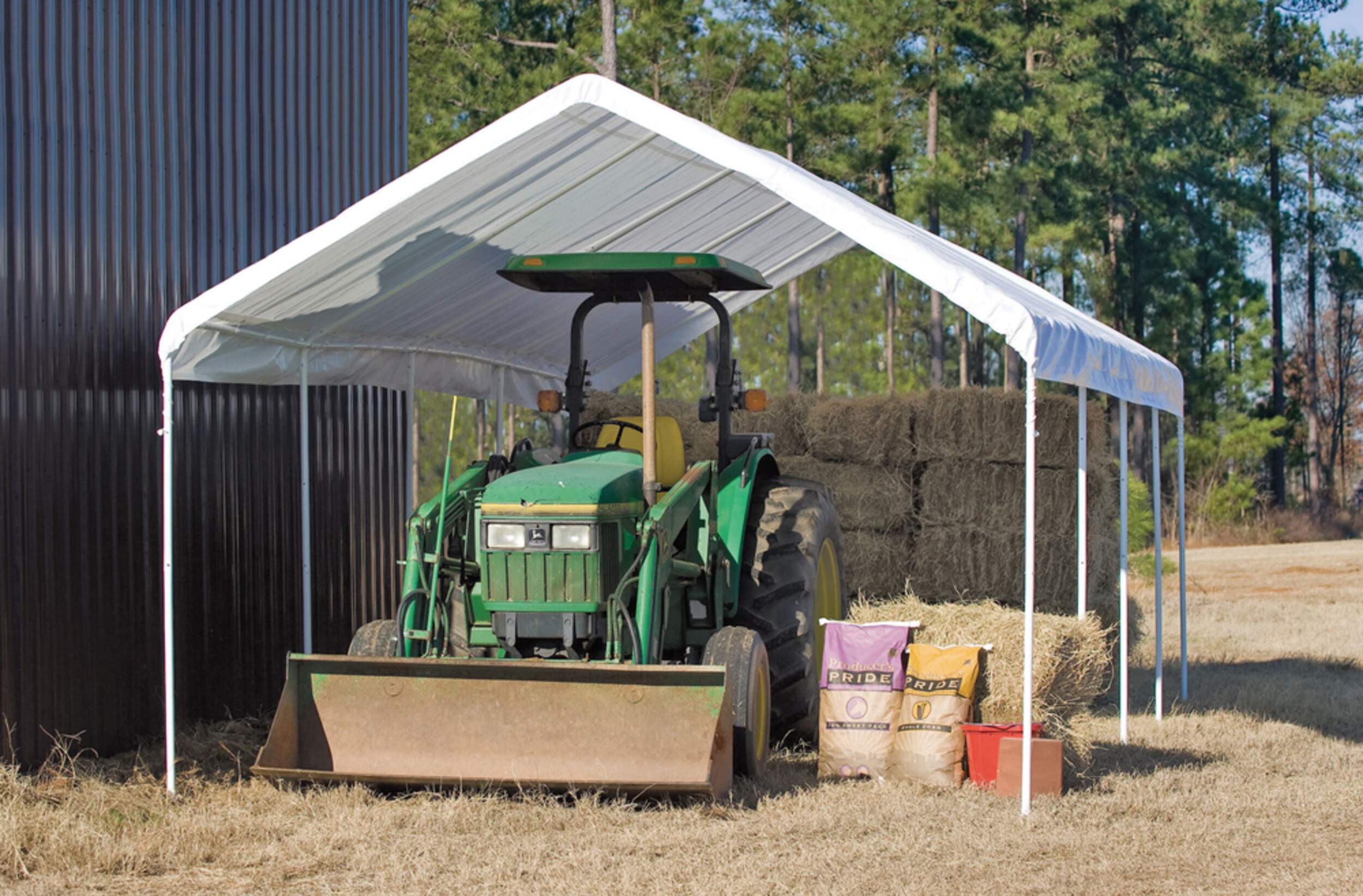 Cet abri est une structure temporaire. Le non enlèvement régulier de la neige et de la glace pourrait faire s'effondrer ou se déformer l'abri, causant des dommages aux biens non couverts par la garantie