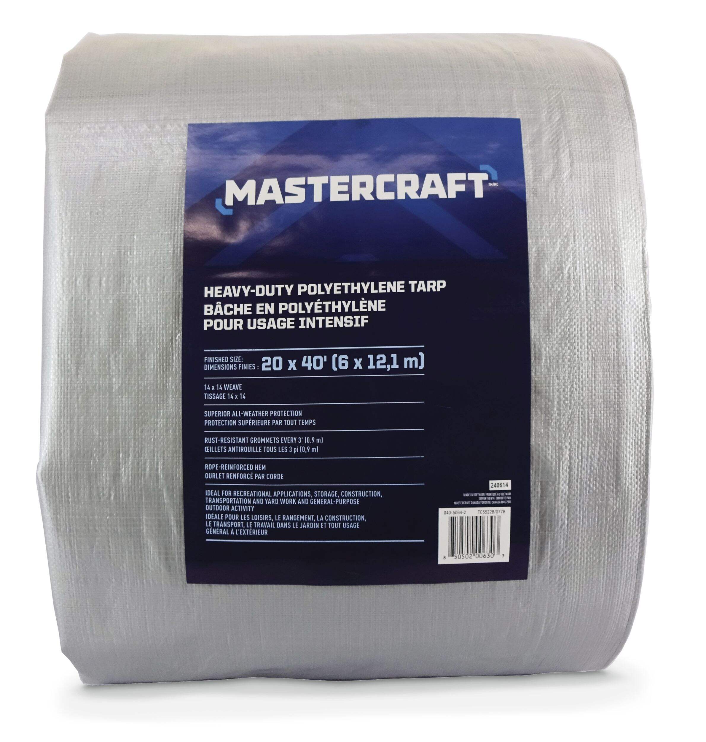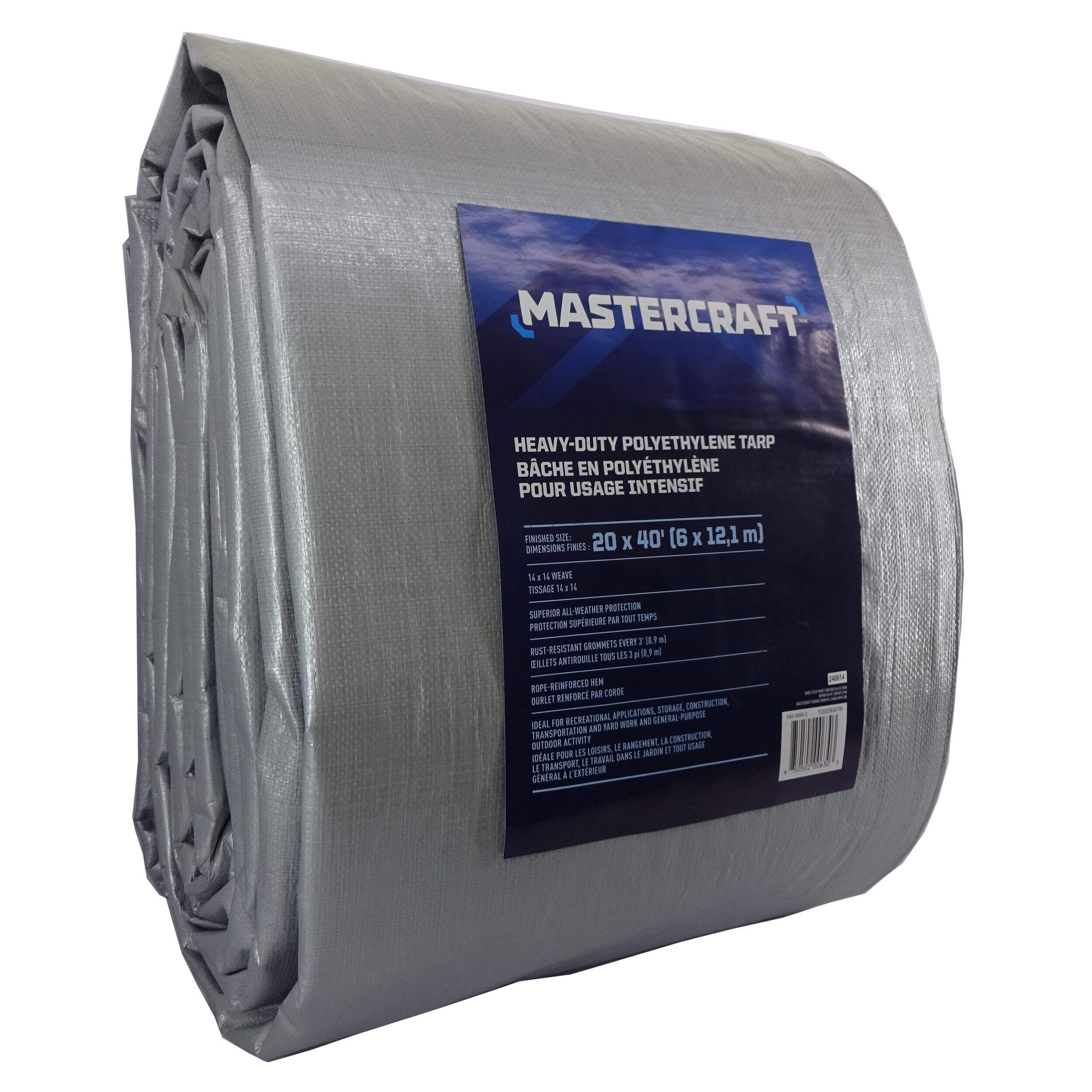 La bâche robuste de qualité supérieure Mastercraft est idéale pour les loisirs, le rangement, la construction, le transport et les travaux dans la cour, ainsi que pour les activités générales à l'extérieur. Fabriquée en polyéthylène étanche avec protection UV, elle offre une protection fiable contre les intempéries.
