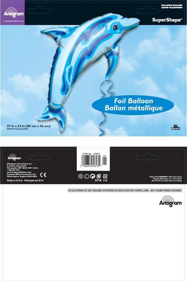 Ce gros ballon en mylar et aluminium bleu en forme de dauphin de 26 pouces est idéal pour ajouter une décoration supplémentaire à une fête sur le thème de la mer. La forme irisée et la teinte brillante aideront à créer une ambiance amusante de fête océanique. La valve autoscellante garde l'hélium ou l'air à l'intérieur après le gonflage, permettant au ballon de flotter ou simplement de se tenir debout fièrement. Livré non gonflé, le ballon nécessite un gonfleur d'air ou une bouteille d'hélium pour prendre vie.