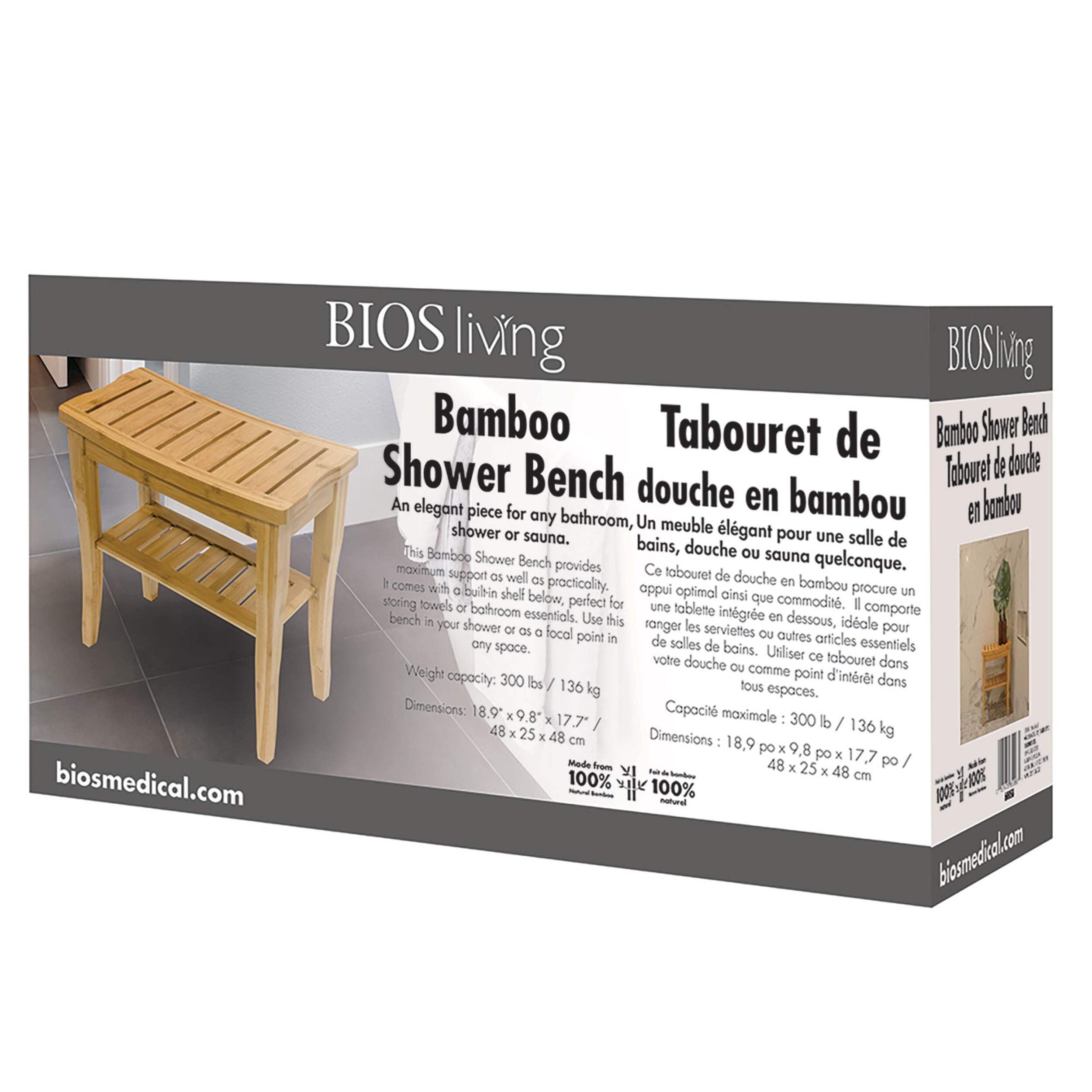 Banc de douche en bambou BIOS fait à 100 % de bambou naturel