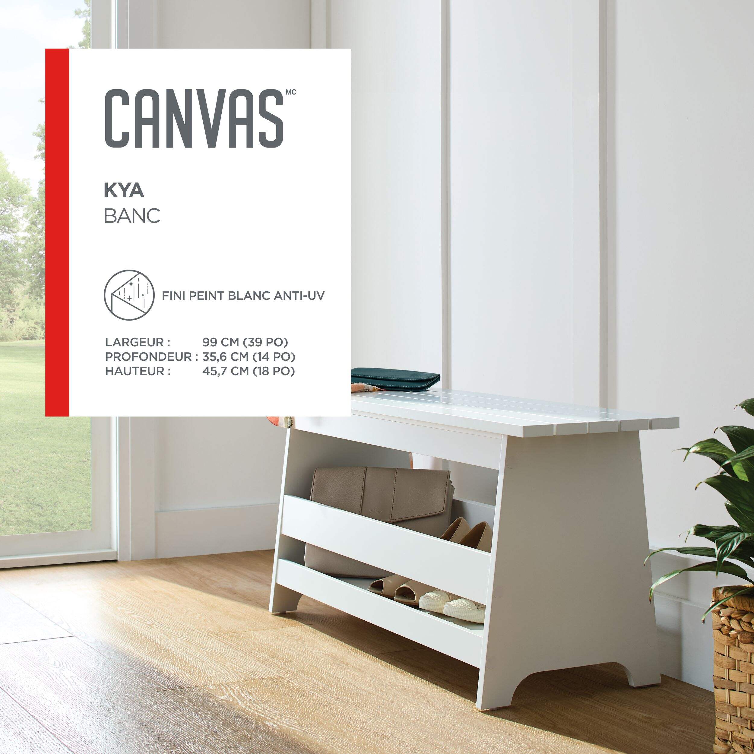 Banc Canvas Kya au fini peint blanc et au style simple permettant de rehausser l'attrait visuel de n'importe quelle pièce, en faisant un ajout élégant