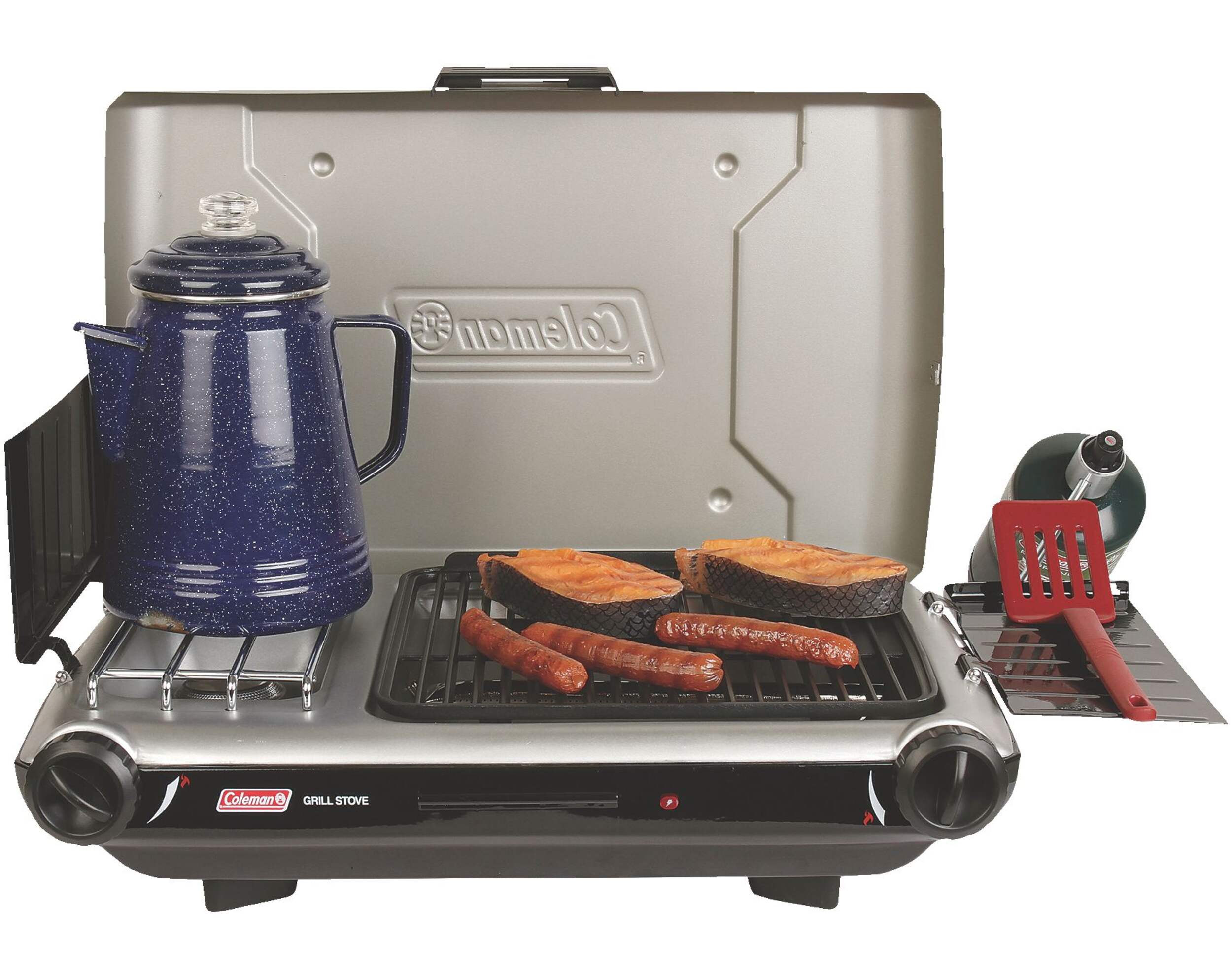Profitez facilement d'une variété de repas en camping ou à la remorque avec le gril et réchaud de camping 2-en-1 Coleman Classic. Grâce à sa conception tout-en-un, ce réchaud de camping vous permet de griller et d'utiliser des brûleurs en même temps, ce qui vous permet de préparer facilement le déjeuner, le dîner et le souper en plein air. Ce gril et réchaud de camping est également doté de deux brûleurs réglables avec un bouton de rotation amélioré pour un contrôle précis de la température, avec la commande de pression PerfectFlowMC et la technologie PerfectHeatMC pour garder la chaleur stable tout en consommant moins de carburant. Ce réchaud de camping tout-en-un polyvalent et compact est idéal pour le camping, les fêtes d'avant-match ou votre propre jardin.