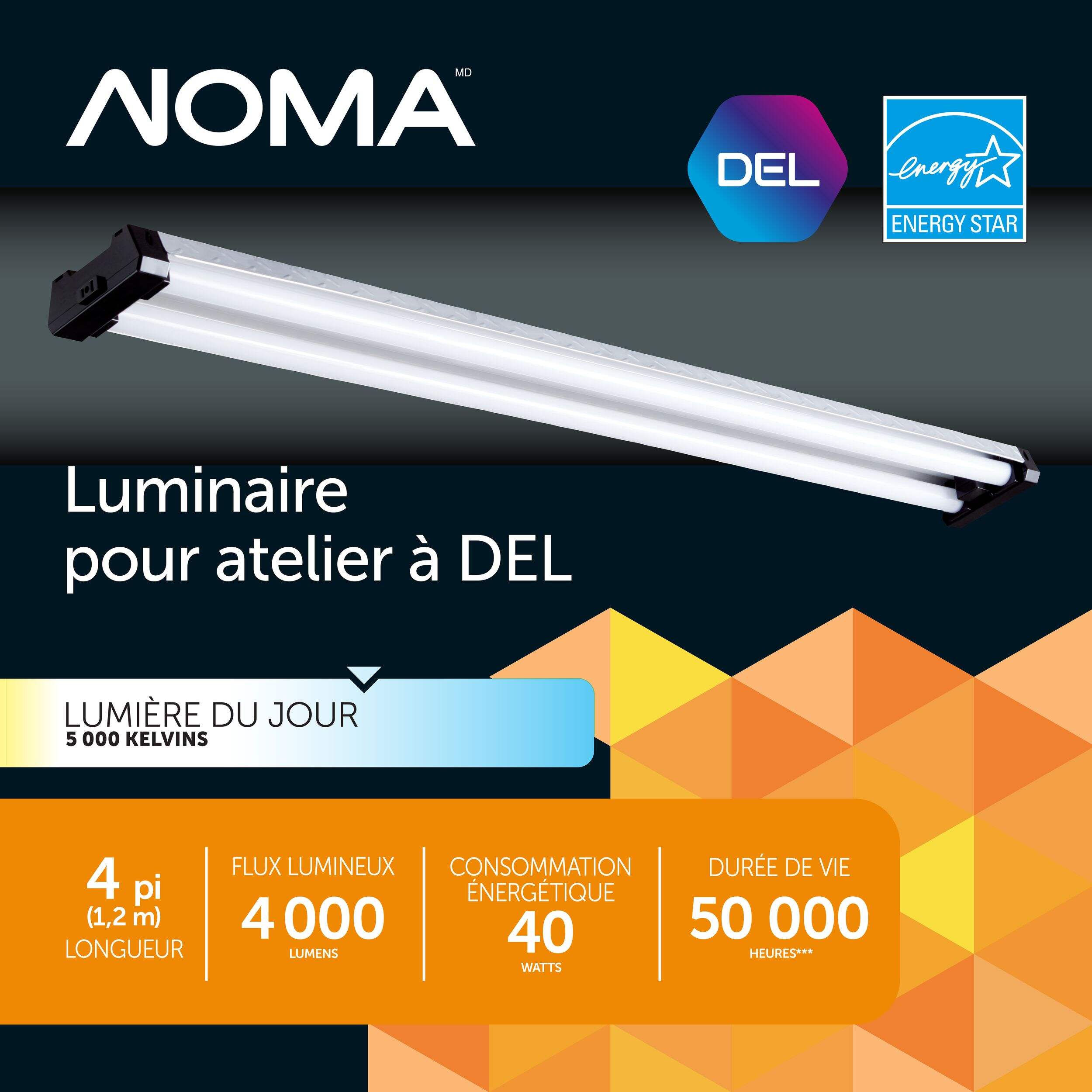 Lampe de poche à DEL de 4 pi avec plaque en losange à lentille givrée, raccordable, 40 W, 4 000lm, 5 000K, 80 CRI, paq. 1
