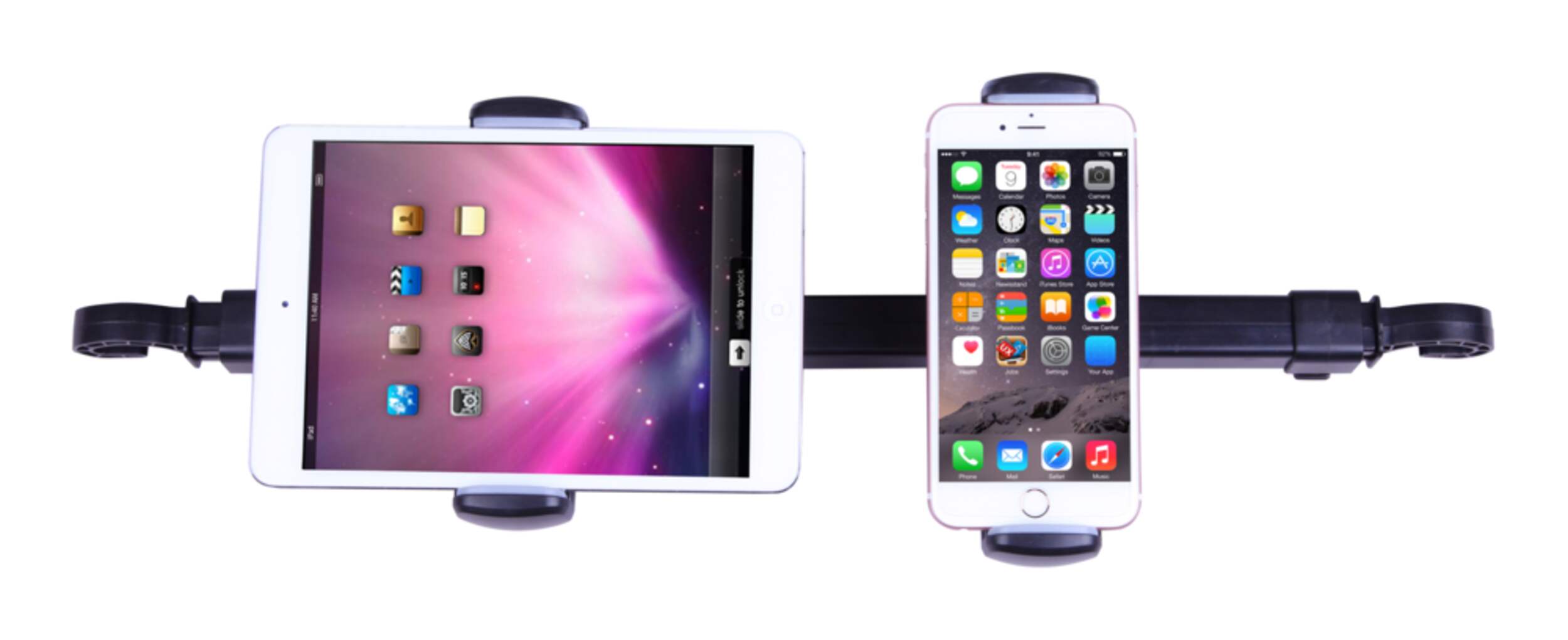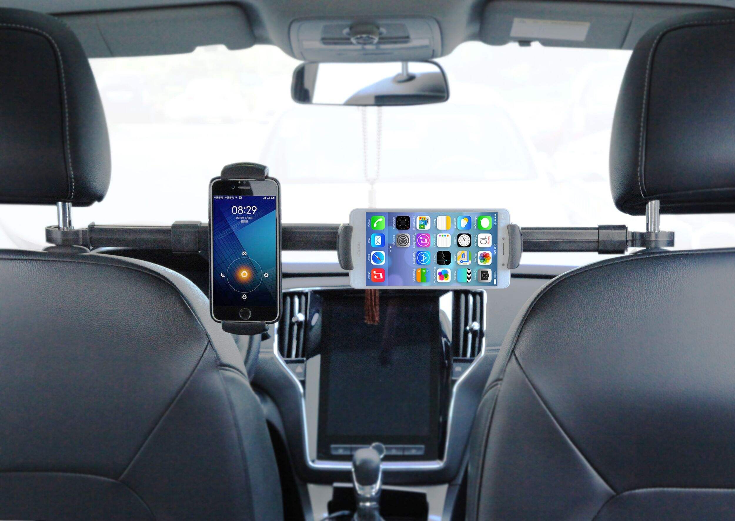 Convient à la plupart des téléphones intelligents, tablettes et voitures — la barre est réglable de 53 à 72 cm