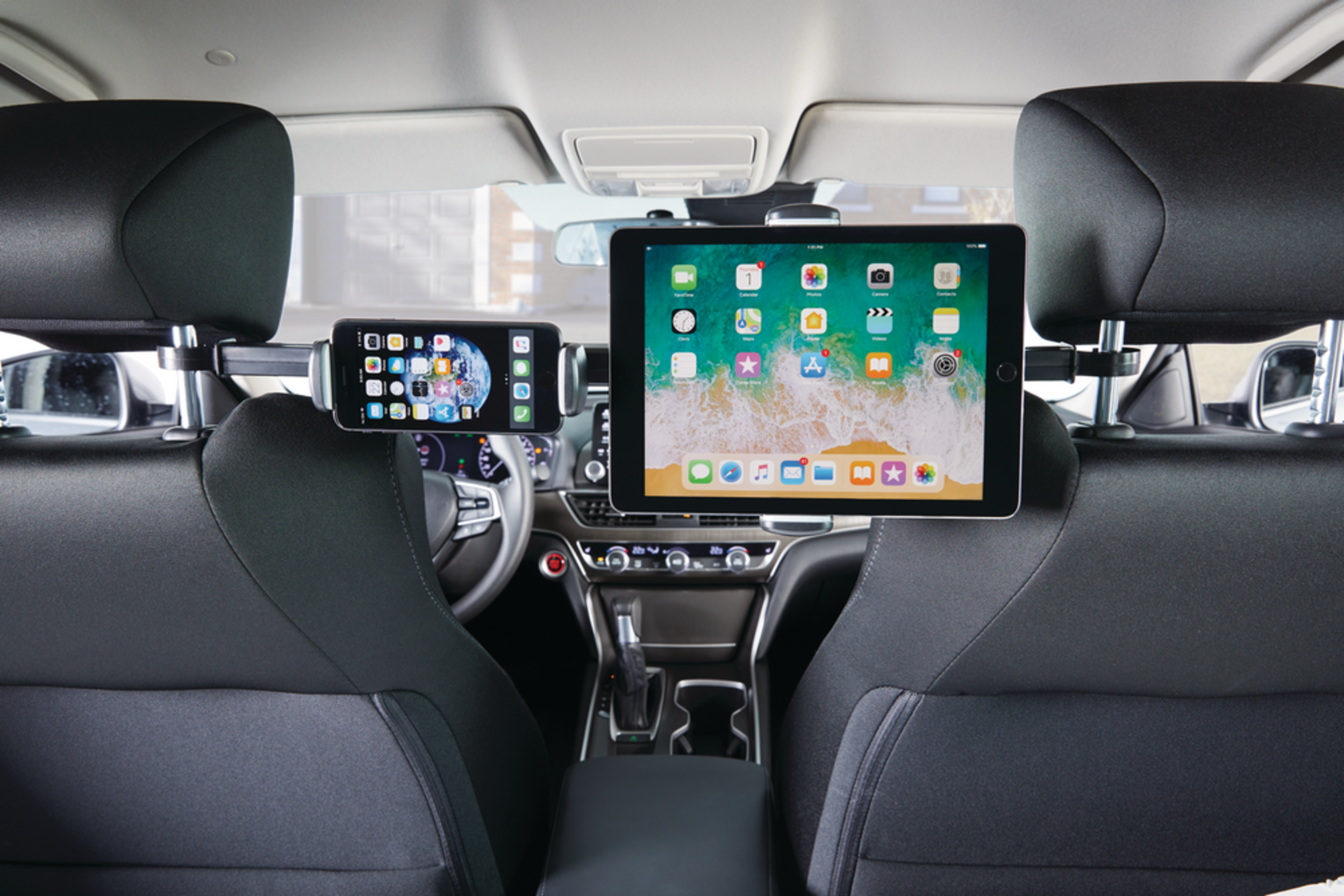 Barre pour appui-tête double AutoTrends de conception unique pouvant être utilisée entre les appui-têtes de 2 sièges d’auto