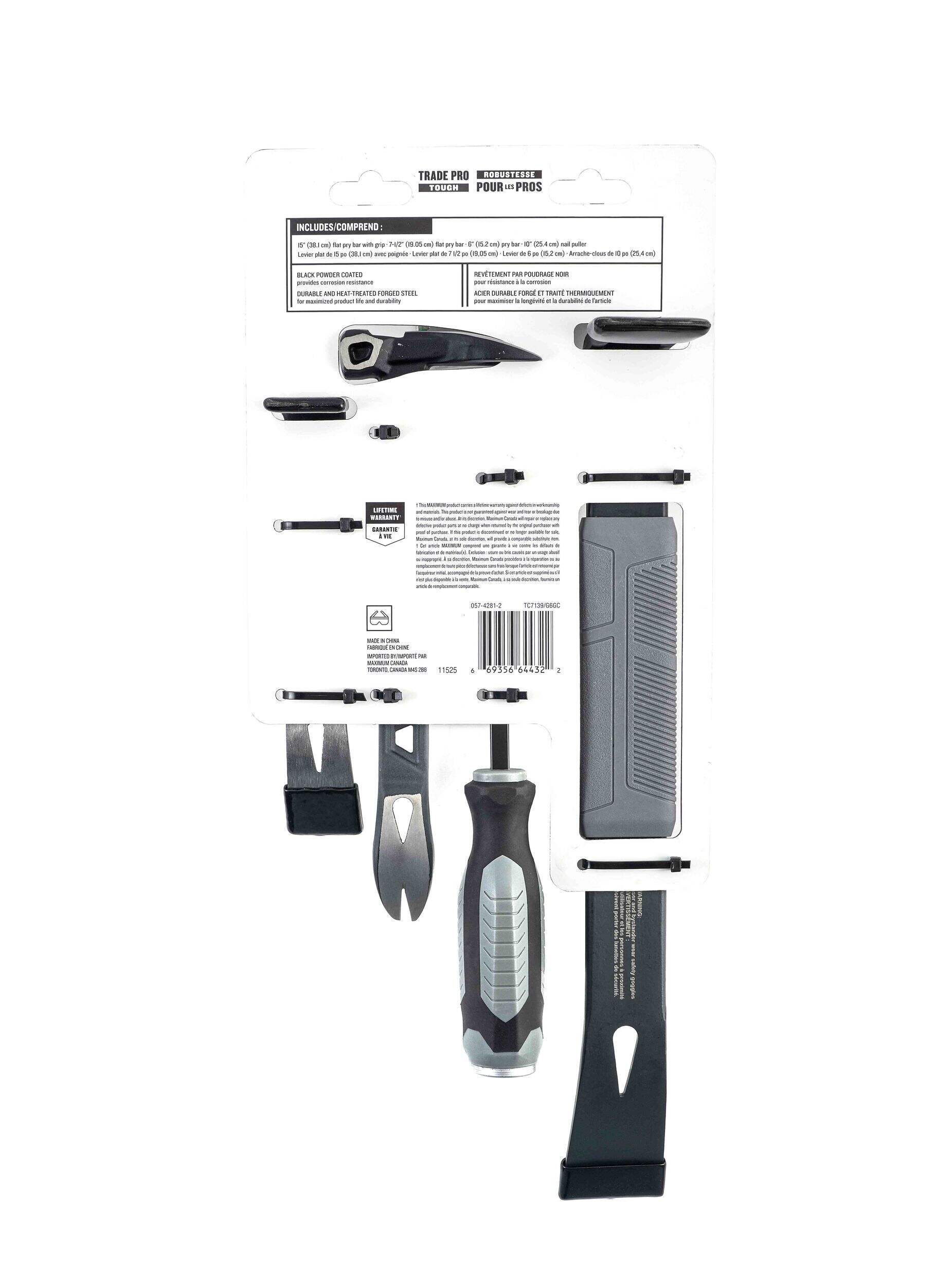 Comprend un levier plat de 15 po, un levier plat de 7 po, un levier de 6 po et un arrache-clou de 10 po