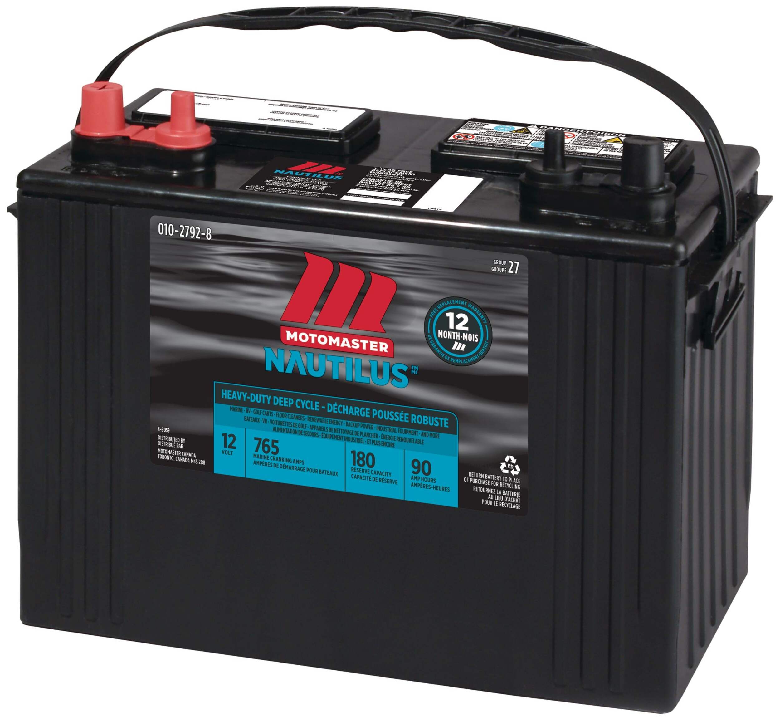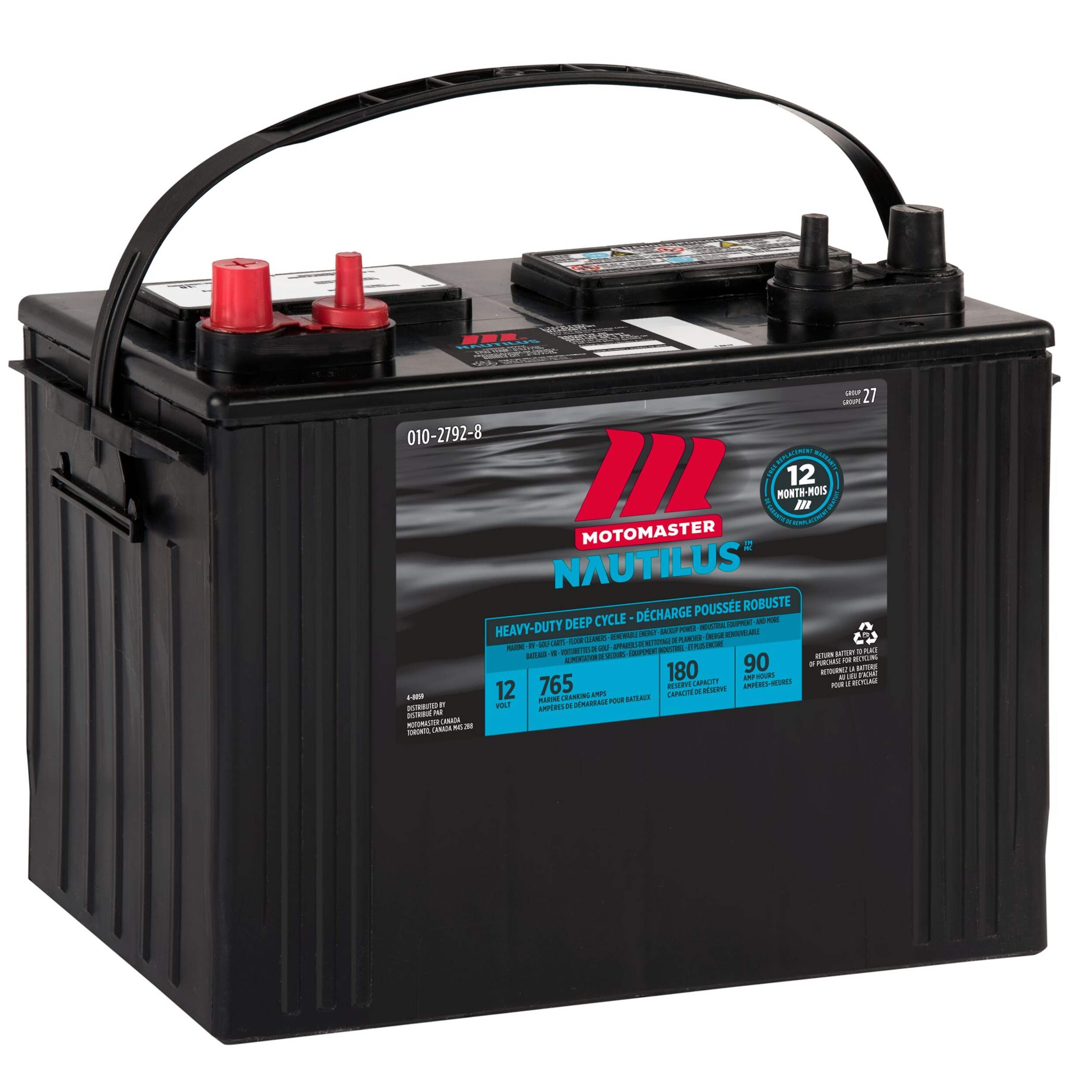 La batterie à décharge profonde de service intense MotoMaster NAUTILUS de groupe 27 est conçue pour offrir une grande durabilité et une puissance de longue durée pour une variété d'applications. Elle assure des performances fiables pendant de longues périodes, même sous charge. Avec ses dimensions de 318 mm L x 172 mm la x 239 mm H (12-1/2 x 6-3/4 x 9-3/8 po), cette batterie équilibre puissance, endurance et fiabilité pour une utilisation récréative et intensive.